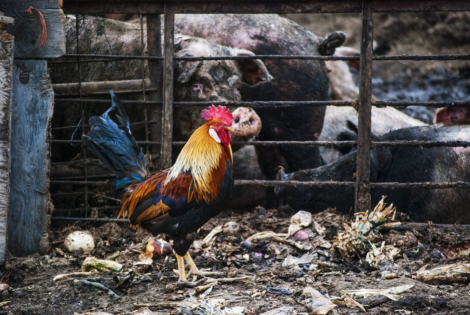 I have been trying different kinds of photography and I have been looking at National Geographic Your Shot assignments, one they had was to find the nature and wild in your back yard so I went out around town looking for things to photograph. I found grasses and a couch on the side of the road but the most interesting thing I found I thought was a colorful chicken that was walking on the street in front of a pig farm. Anyway here are a few of the photos I captured.