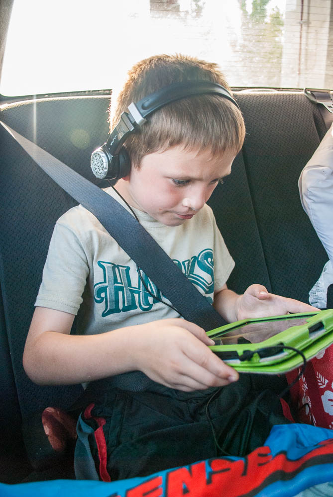 I wanted to document every step of the way so I took a picture of the kids eating pizza before we left. I got a picture of the amount of ranch Greg and Jayse put on their pizzas. We had to stop and get gas so I got a picture of that. We also had to stop and get oil for my car so I documented that. What I didn’t manage to get a picture of was all the construction we had to go through. It was crazy! I did however, get a picture of the speed limit sign. I tell you going 80 on that open freeway was awesome! I grabbed a selfie and a few pictures of the kids watching or playing with their electronics.