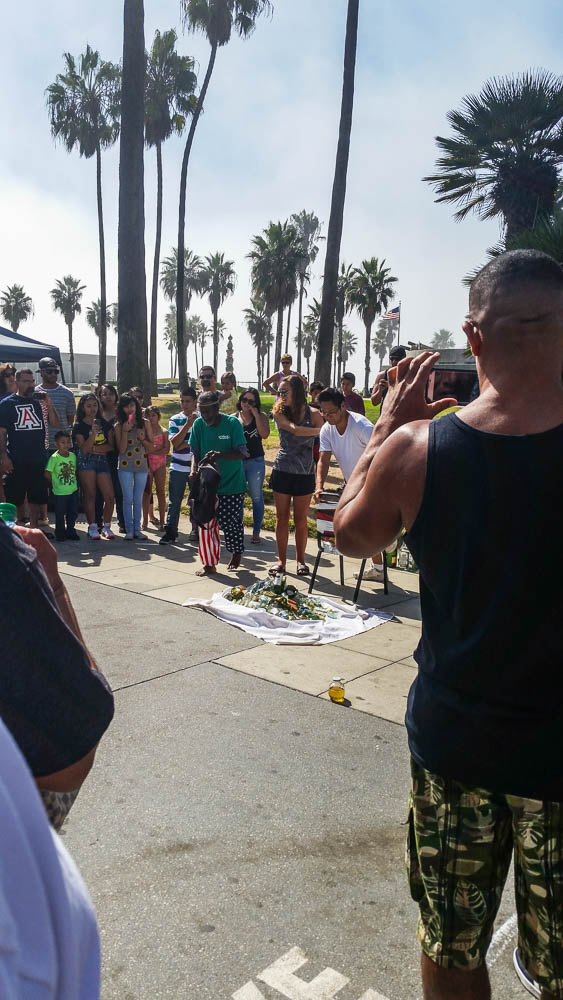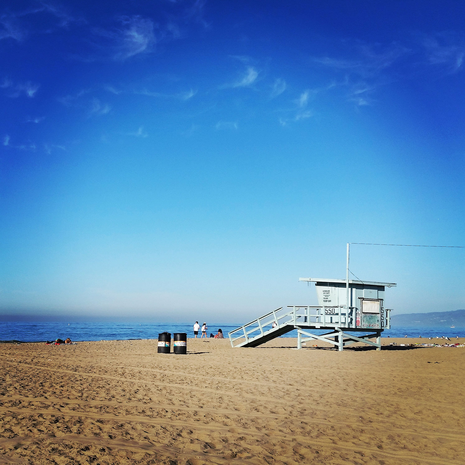 I ventured far enough into Venice to get to Muscle Beach where I saw a lot of equipment but not a single person there. At that point I had enough and turned around to walk back to Santa Monica Pier. On my way back I bought a small art piece from one of the artists. I thought it was interesting. I also saw a photographer that had some beautiful ocean images. I saw a picture of a lifeguard stand that had an amazing sunset. I talked to him for a bit and he told me that the life guard stand was the first one on the beach a ways up. He then pointed to another picture and pointed to the lifeguard stand in the distance right behind him and said it was a picture of that one. He told me that this life guard stands name was Thornton. I told him that was my last name and he showed be a bunch of other pictures he had taken of that spot. I ended up buying one of his images and walked the distance to the lifeguard stand to get my own pictures. As I walked up to get my picture a homeless man decided it was time for his nap underneath it in the shade. I just went and sat at the beach for a while hoping he would move in a bit and I could get my picture. I sat there for about an hour and he finally moved on. I got my picture and then walked back to the Santa Monica Pier from the ocean. It was so nice. It was much cooler by the ocean and I didn’t have to walk pass all the homeless asking for money.