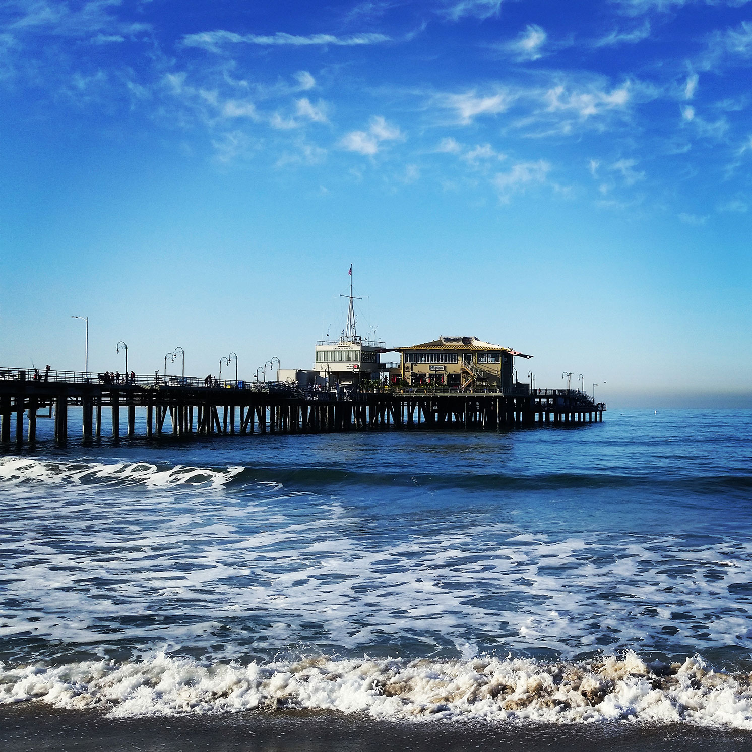 I arrived in Los Angeles at 7:15 am. I took a shuttle to the rental car lot to get a car. The day before I had finally broke down and gone and got Greg and I new phones. I am so glad I did because I used the heck out of that thing. I was able to get around all of Los Angeles with the gps on my new phone. I decided I wanted to go to the Santa Monica Pier. I headed straight there and got there about 8:30. It was still pretty early so there wasn’t a lot of people and a lot of the stores weren’t open yet. Luckily Bubba Gump Shrimp was open and they served breakfast so I went in and had eggs benedict.