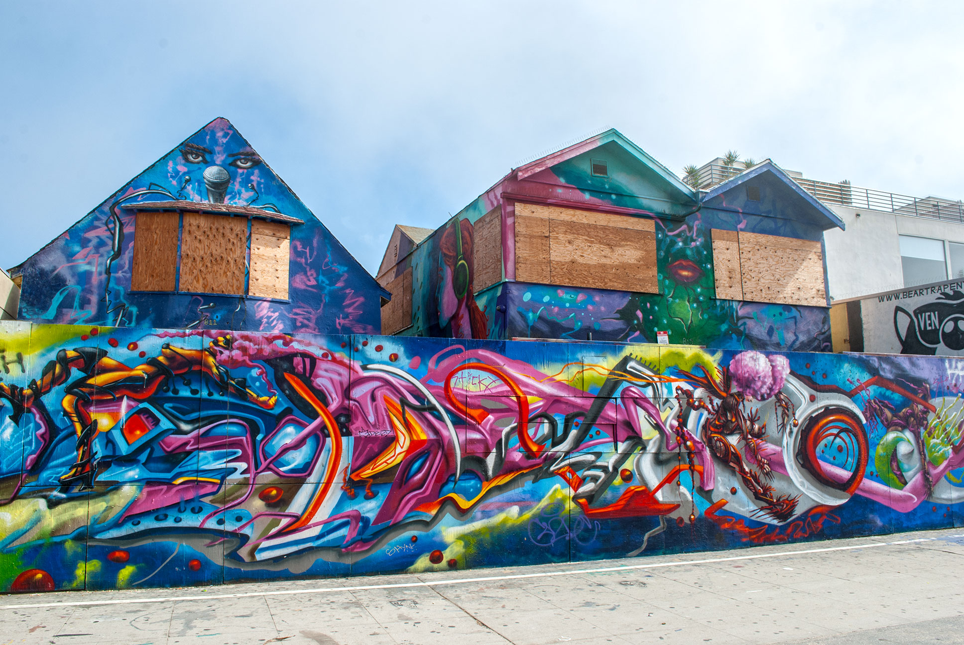 Venice beach was an interesting place. Not one that I would go back to but glad I got to see it. When I thought of Venice I thought of the ocean, the street artists and performers and muscle beach. All of that is there it’s just different. I walked along the board walk and there some really cool colorful buildings that I got pictures of. There were a lot of things I couldn’t get pictures of though because there are handmade signs posted everywhere not to take pictures. A lot of the artists didn’t want pictures of their stuff taken or you could make a donation to them and take pictures. Also a lot of the art was different, there were a lot of homeless there with art made from stuff they found – some of it was really awesome and inspiring to see what they could do, others not so much. There weren’t a lot of performers either. I only saw what appeared to be a homeless man about to sit on a pile of glass.
