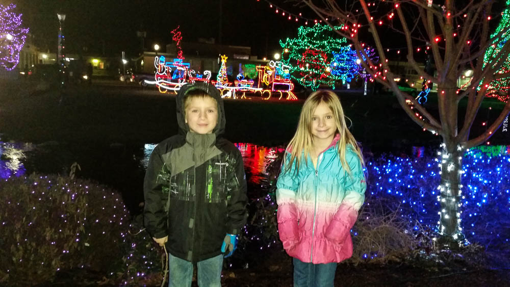 One of our advent activities was to go look at Christmas lights. We usually drive around and look at lights but we had already done that when we did a light scavenger hunt with Darin and his family so this time we drove to Caldwell to see the lights there. It was really pretty and fun to walk around and see.