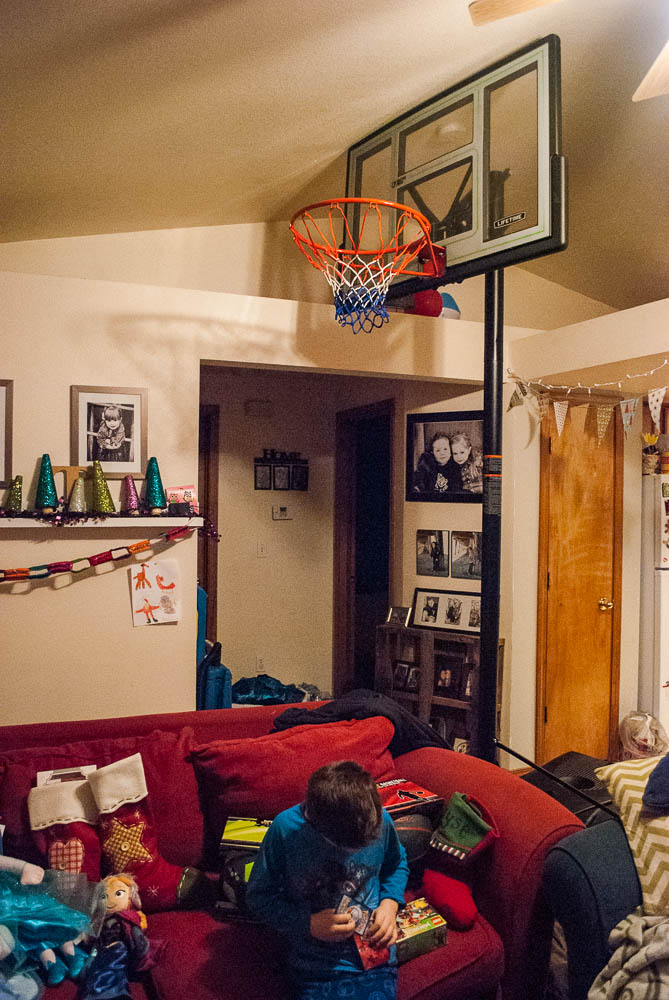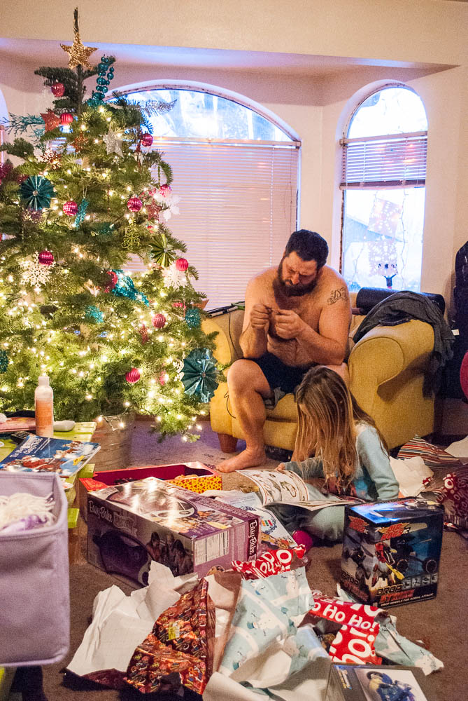 We continued the tradition we started last year of making breakfast in the crockpot. It’s the best having breakfast already done Christmas morning. The kids inspected the presents they got from Santa and then wanted to start opening all their other presents. We opened presents and then ate breakfast. Then we just hung out the rest of the day munching and playing. That night we let the kids sleep in the living room under (near) the Christmas tree.