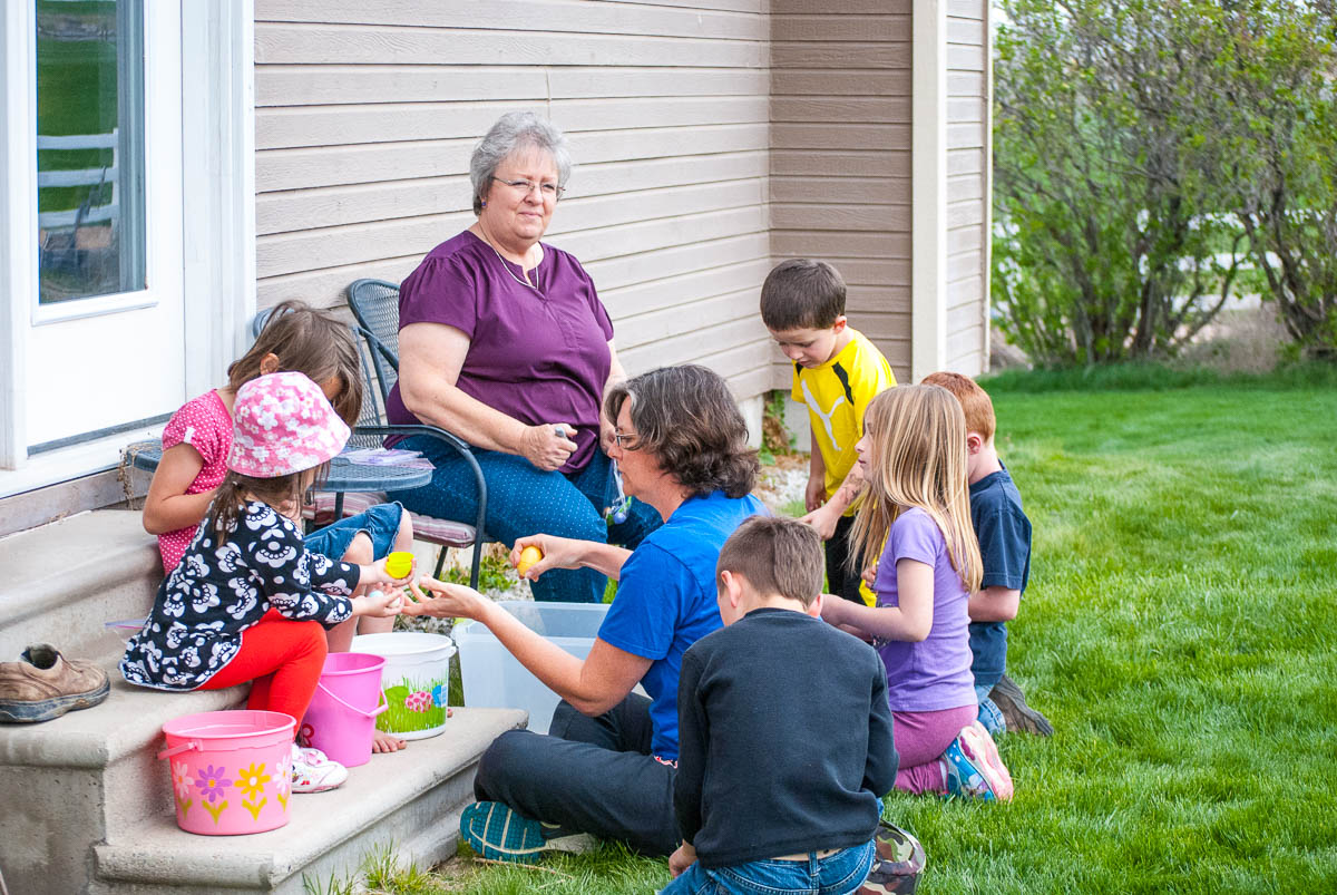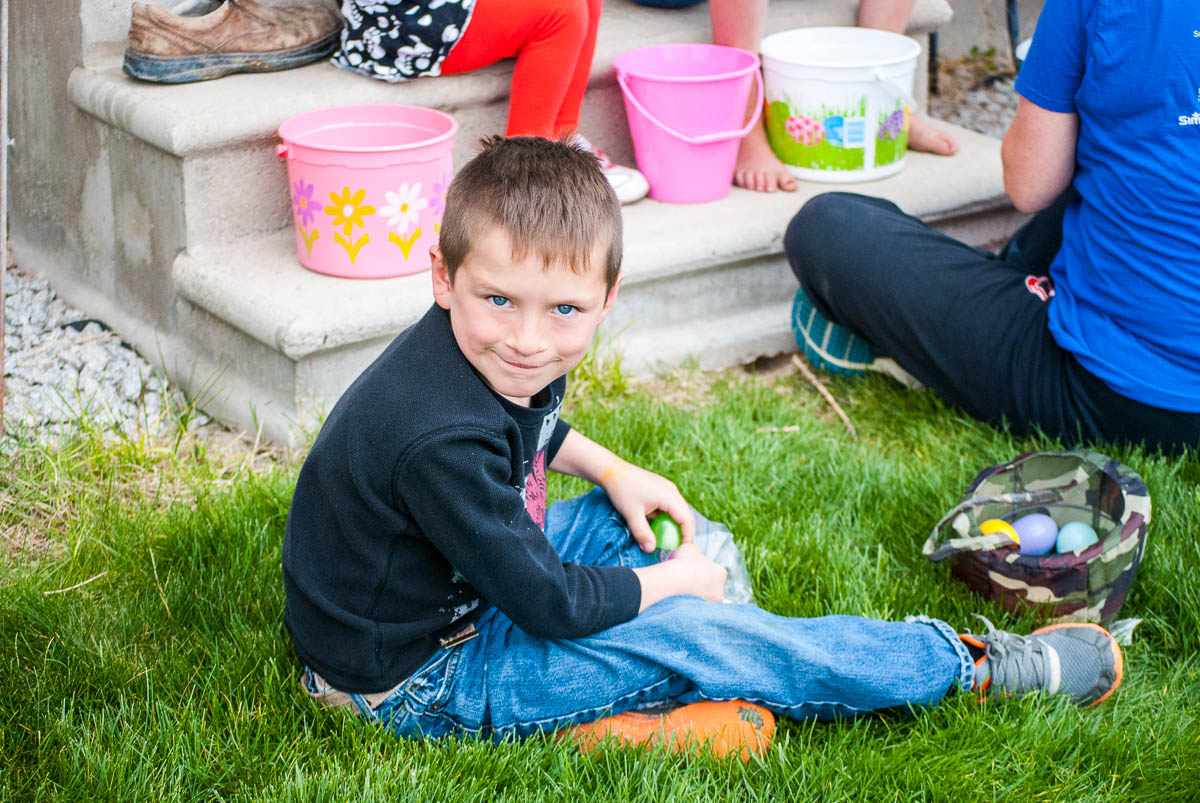 After the kids soccer games we headed out to Melba to my Aunt & Uncle’s for their annual egg hunt. I’ve been going out there since I was a kid. We had a yummy lunch and then the guys went out and hid the eggs. The kids each got to find 20 something eggs. That’s a lot of eggs considering how many kids are there! The kids had so much fun running around finding eggs. I got some cute pictures of my cousins kids, they are all so adorable.