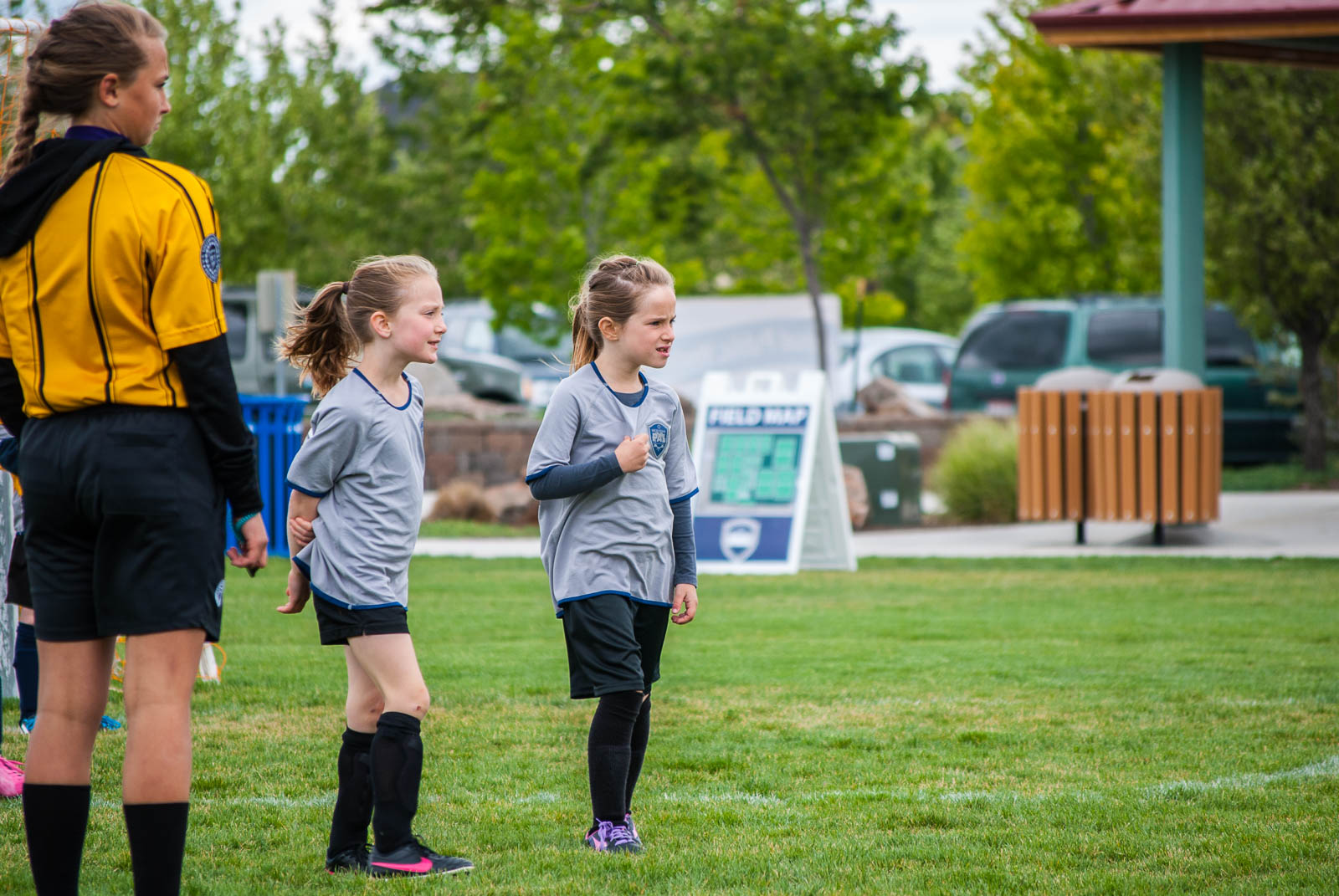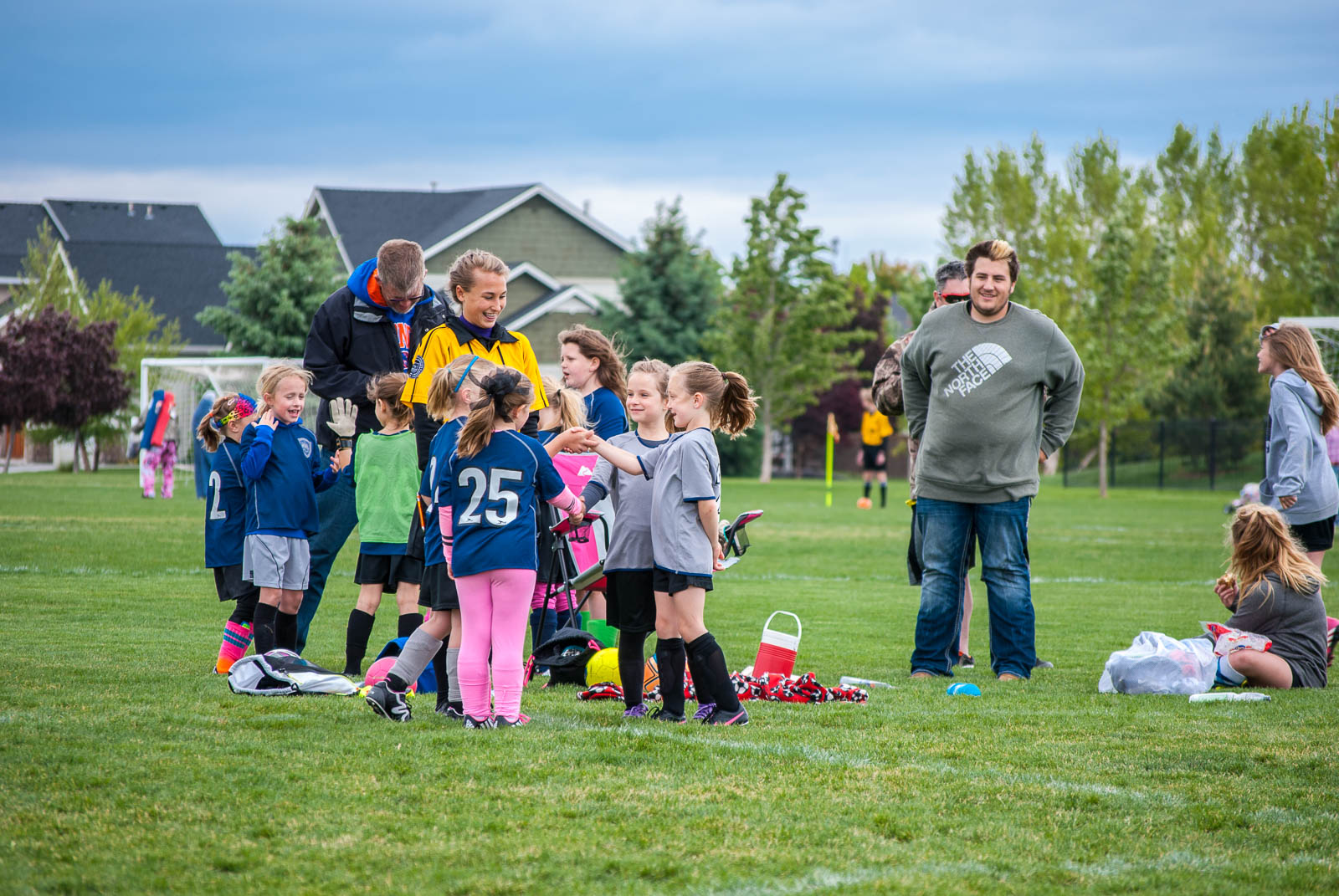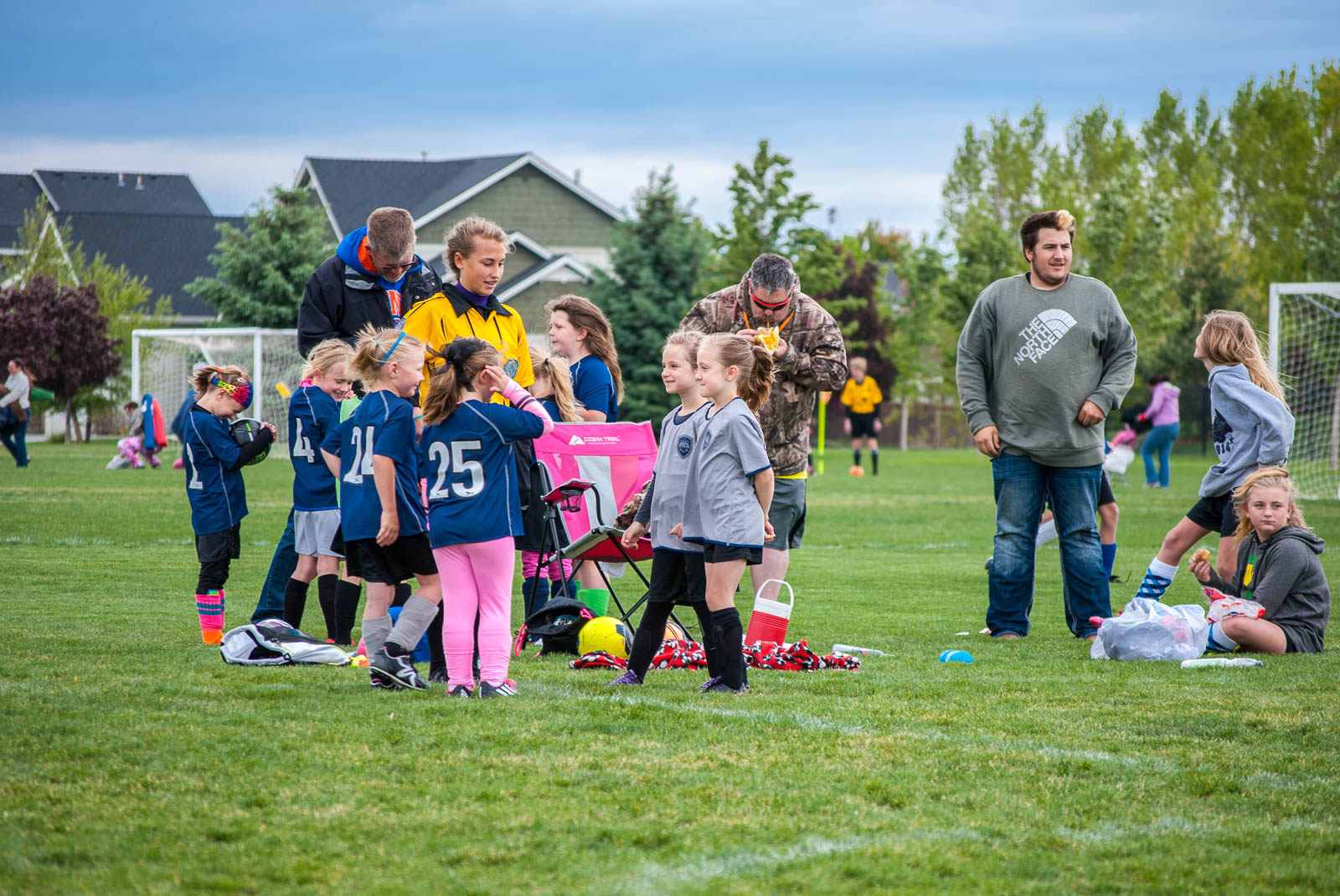 We came back to the field hours later and Jaelee played her last game. She got to be one of the team captains and she got to pick heads or tails for her team. She played goalie for part of it and did a really good job. She seems to really like playing goalie and she does ok but she is still afraid of the ball and closes her eyes when it comes too close. Her team ended up winning their game. It was their only win for the season so it was nice that they at least got one.