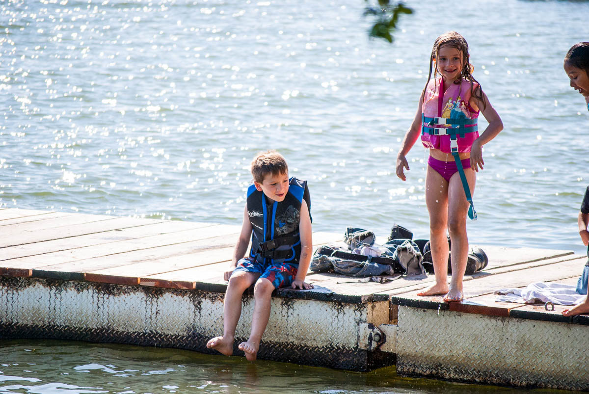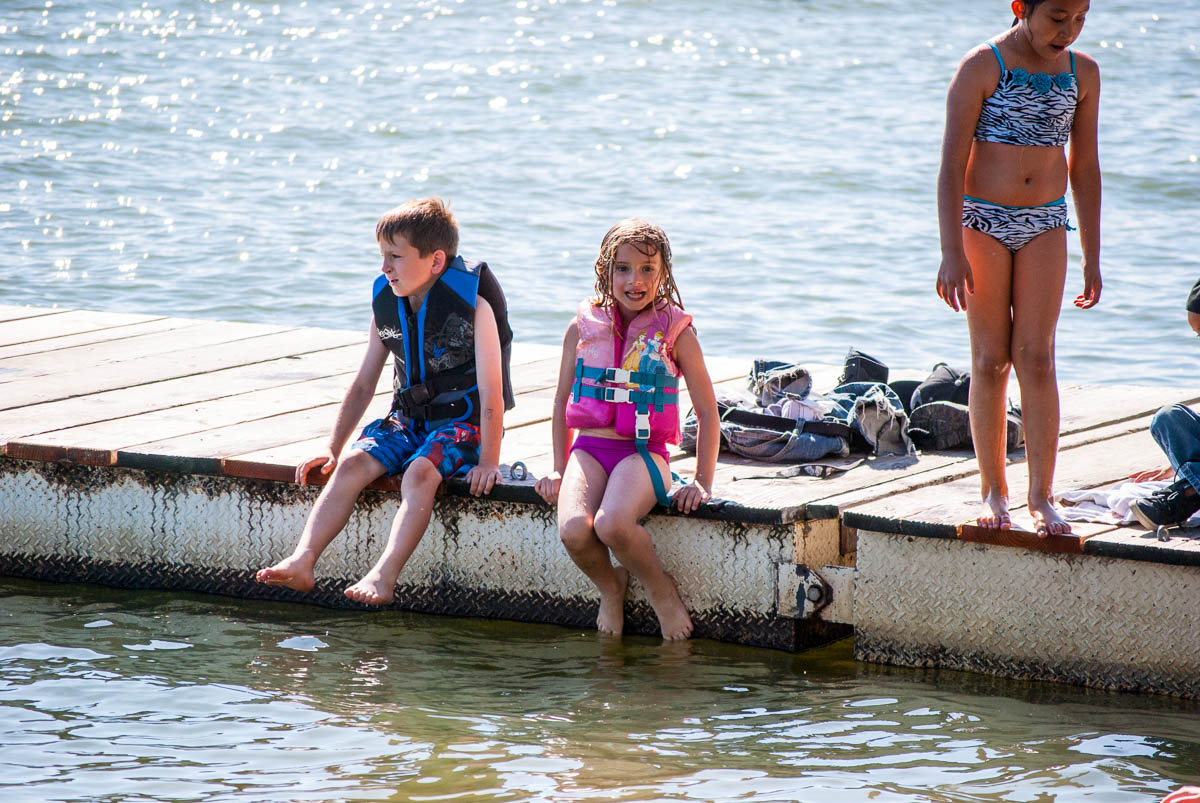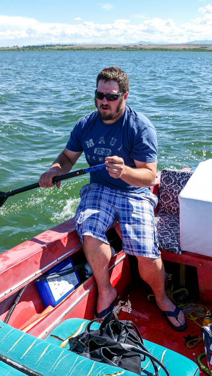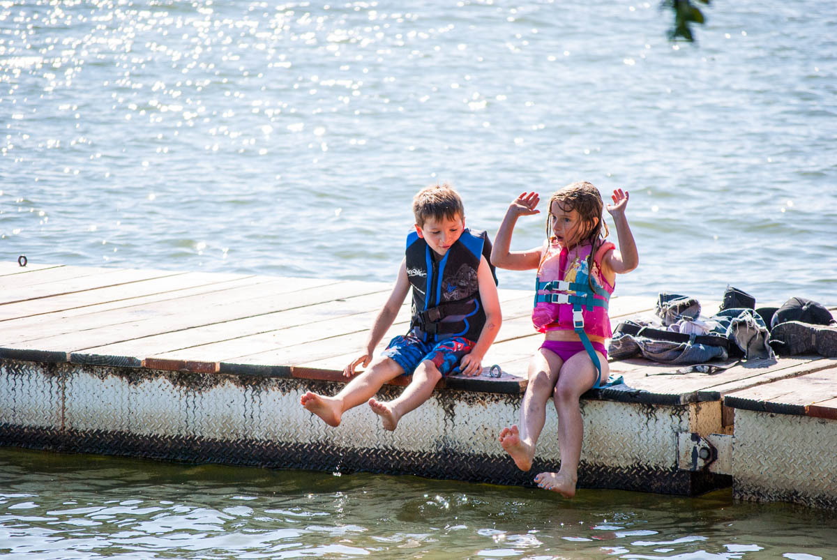 Knowing this might be our only chance to take the boat out I was still determined to go so we loaded the boat and headed to the lake. We finally arrived got the boat in the water and started it up to head out. We slowly pulled out and made it passed the buoys and Greg hit it to speed away and all the sudden a huge amount of smoke started coming out of the engine. I thought we caught on fire so I started yelling fire fire! I moved the kids away from the back and Greg shut the engine off. It turns out that some piece came out and the exhaust was coming into the boat instead of out. We were not able to start the boat again so Greg grabbed the paddle and attempted to paddle us back. However with one paddle and the wind we were going no where. Luckily our phones work out there so I was able to call the sheriffs office and they were able to come and tow us back. Our adventure was a quick one! When we got the boat loaded back up we let the kids play in the water for a little bit and then headed home.