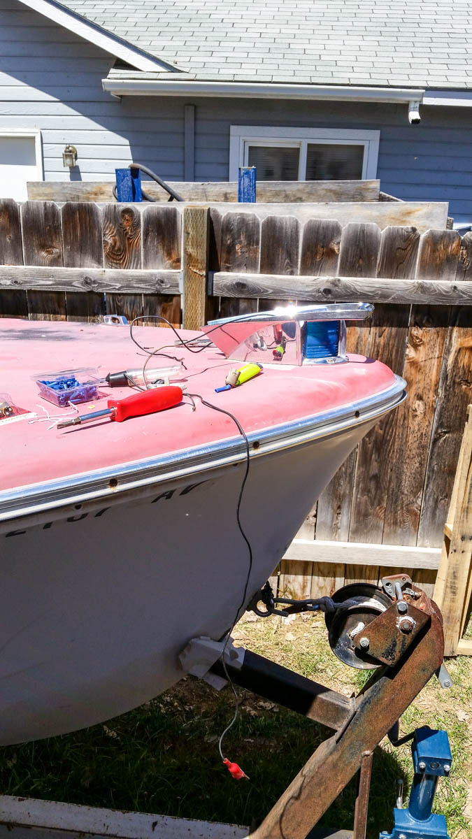 We had a busy summer scheduled already and so for Memorial Day weekend I wanted to take our boat out to the lake. Greg hadn’t gotten it ready yet but I was determined to go out so I made him go outside and work on it. He got the motor started and so we went through our check to make sure all our safety equipment was still good and up to date. We checked our red/green light on the front of the boat and it wouldn’t turn on. I thought maybe the light bulb had just burnt out and it would be a quick fix. It turned out that the wire to the light was bad so Greg had to rewire the light which ended up taking 4 hours!