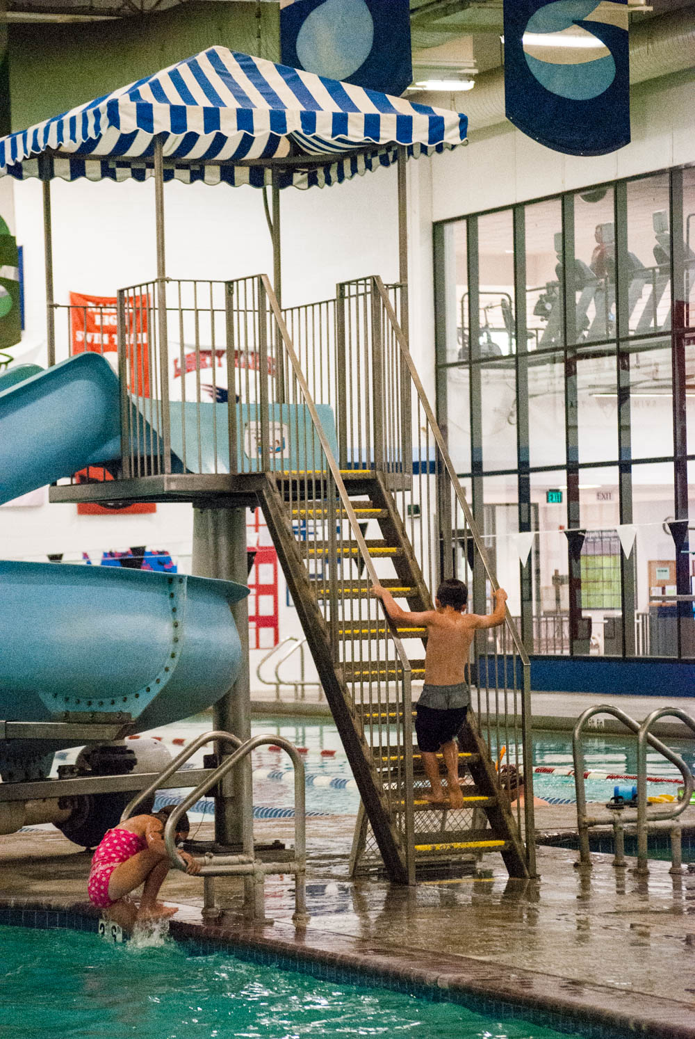 Since we knew Jayse was having surgery soon and wouldn’t be able to swim for the rest of the summer we were cramming as much swimming in as possible. So the 5th of July I took the kids to a water park to swim. Unfortunately the weather was not the best and it was a bit cold out. They however, said they still wanted to go so we went. I think they/I lasted all of 20 minutes before the cold and rain had us done. Because we didn’t get to swim for very long I took them to a near by indoor pool. They were able to go down the slide and swim for hours and I was able to sit in the nice warm hot tub. It turned out to be great!