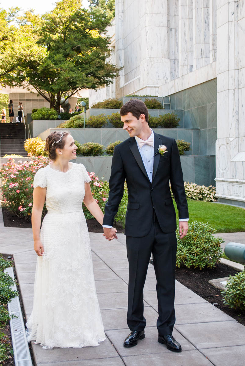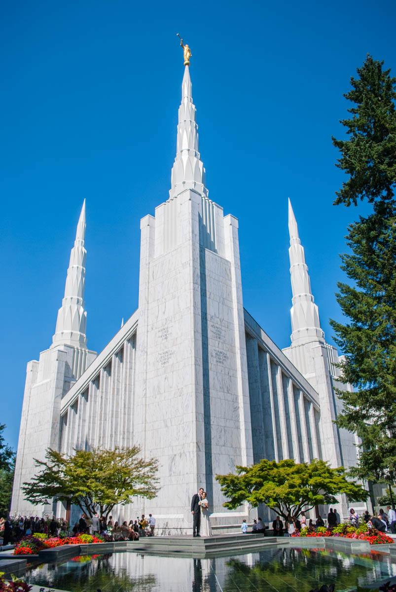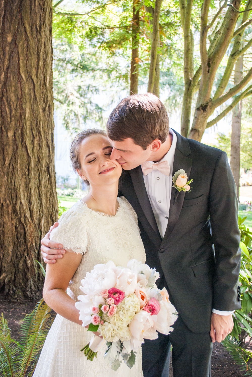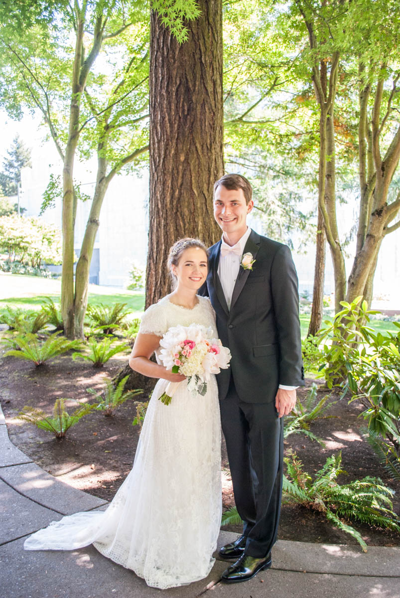 I was excited to be able to photograph this special occasion for them. The usual cloudy weather in Portland was nowhere in site and it was a nice sunny day. While this is always welcome in Portland it was really difficult at this particular time of day to take photographs. Kaitlyn and Alex were married at the Portland temple and the grounds were just beautiful. We had a short time line for photos and a ton of other people at the temple. While taking their pictures Kaitlyn and Alex were so cute and so easy going. They just did whatever I asked. I think we got some great photos of them.