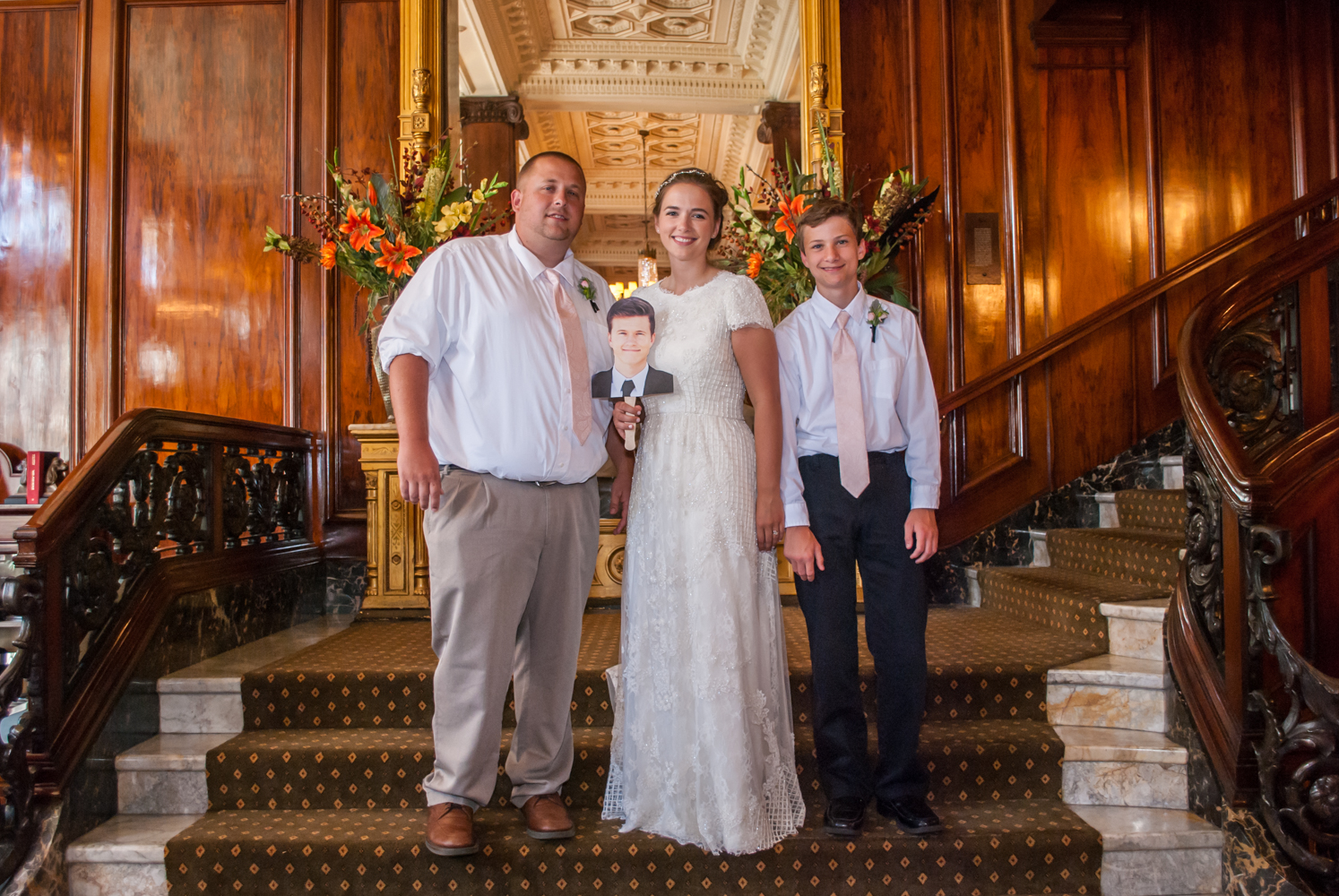 After our world wind of picture taking at the temple everyone headed to downtown Portland. The reception was being held at the marvelous Benson hotel. We were able to take a bunch more pictures on the grand staircase.