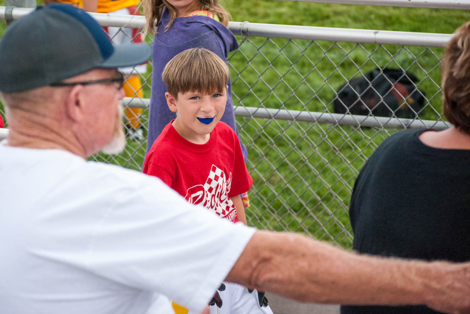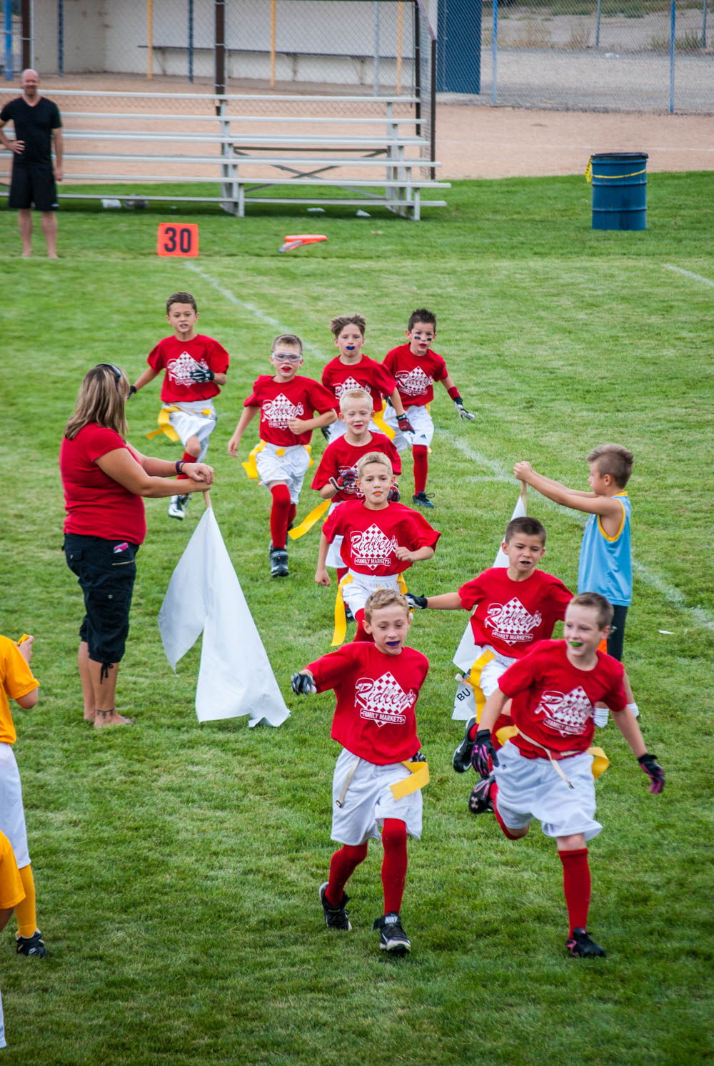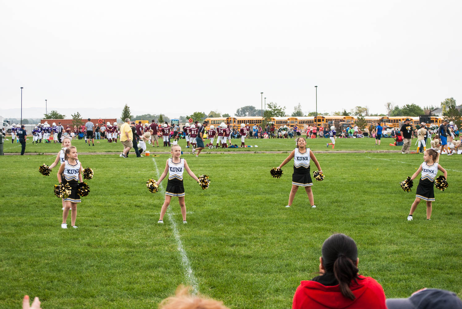 Jayse’s first game was in Marsing. It was a pretty neat first game. It was at the high school? I think, maybe the middle school but they had the speaker system set up and each kid was announced as they ran out onto the field. I thought that was pretty cool.