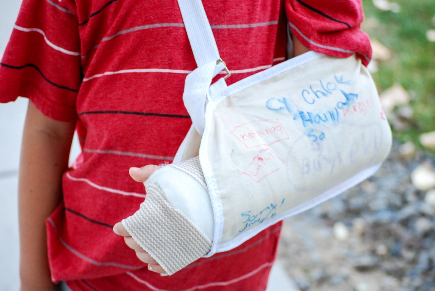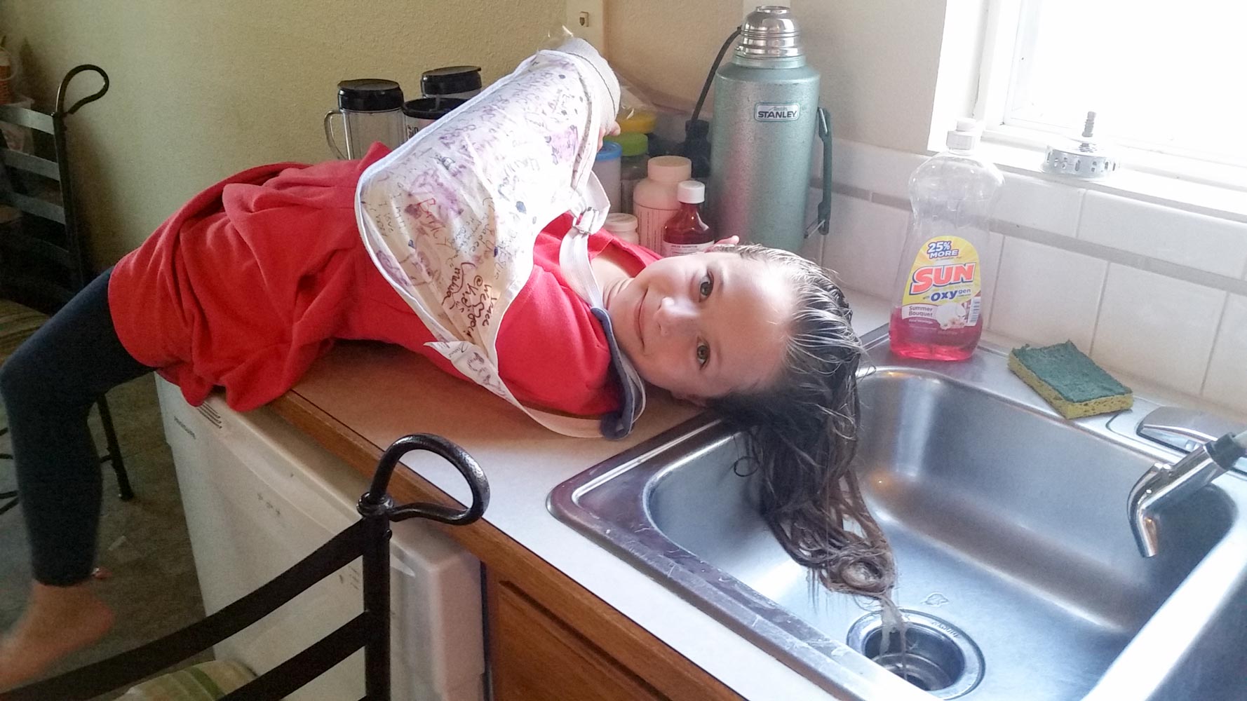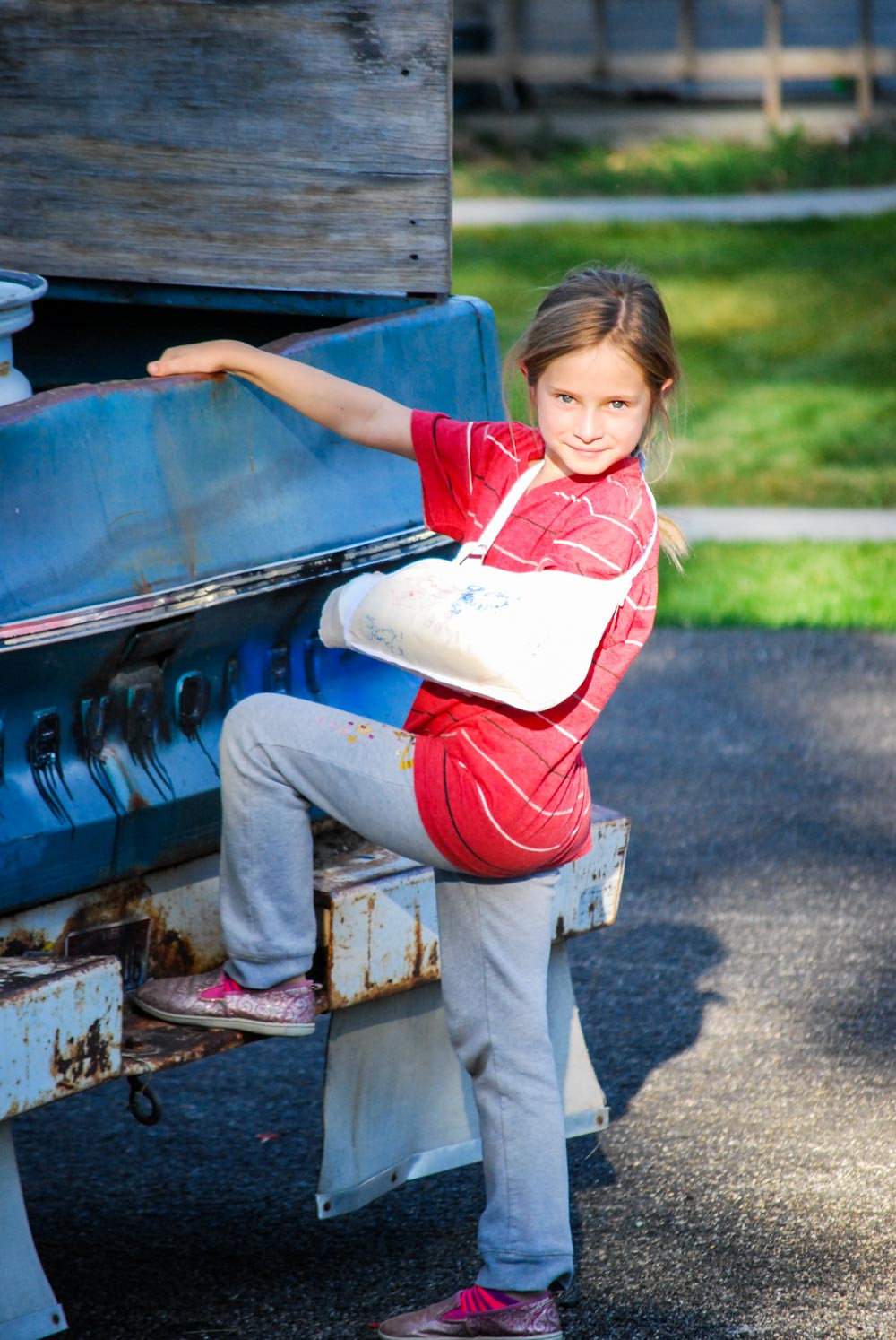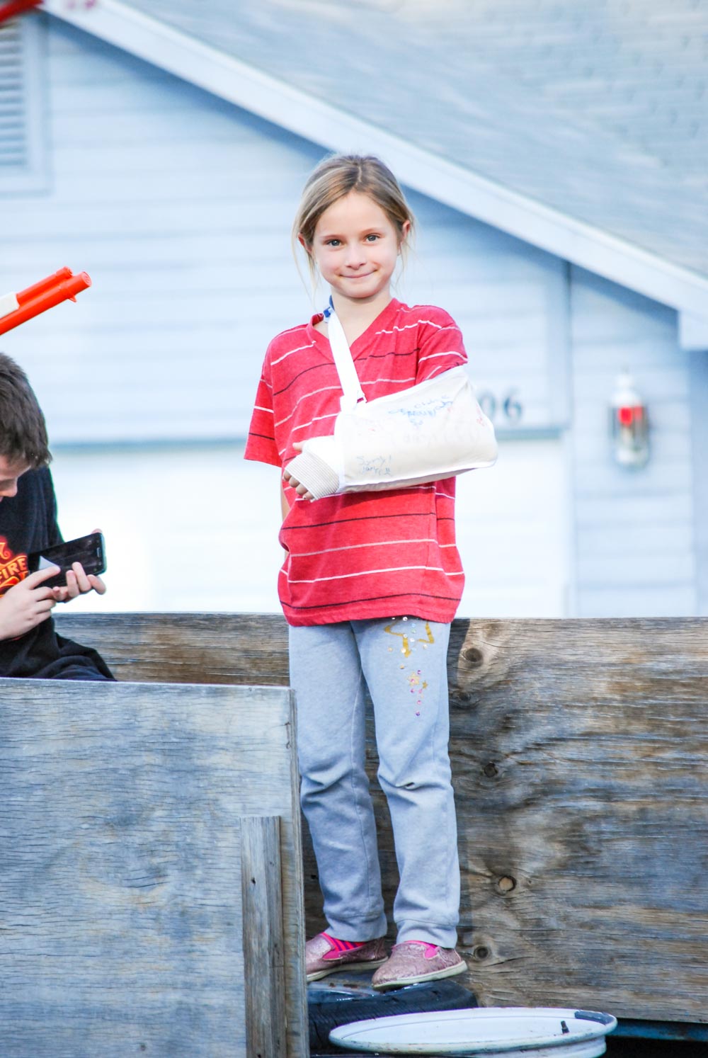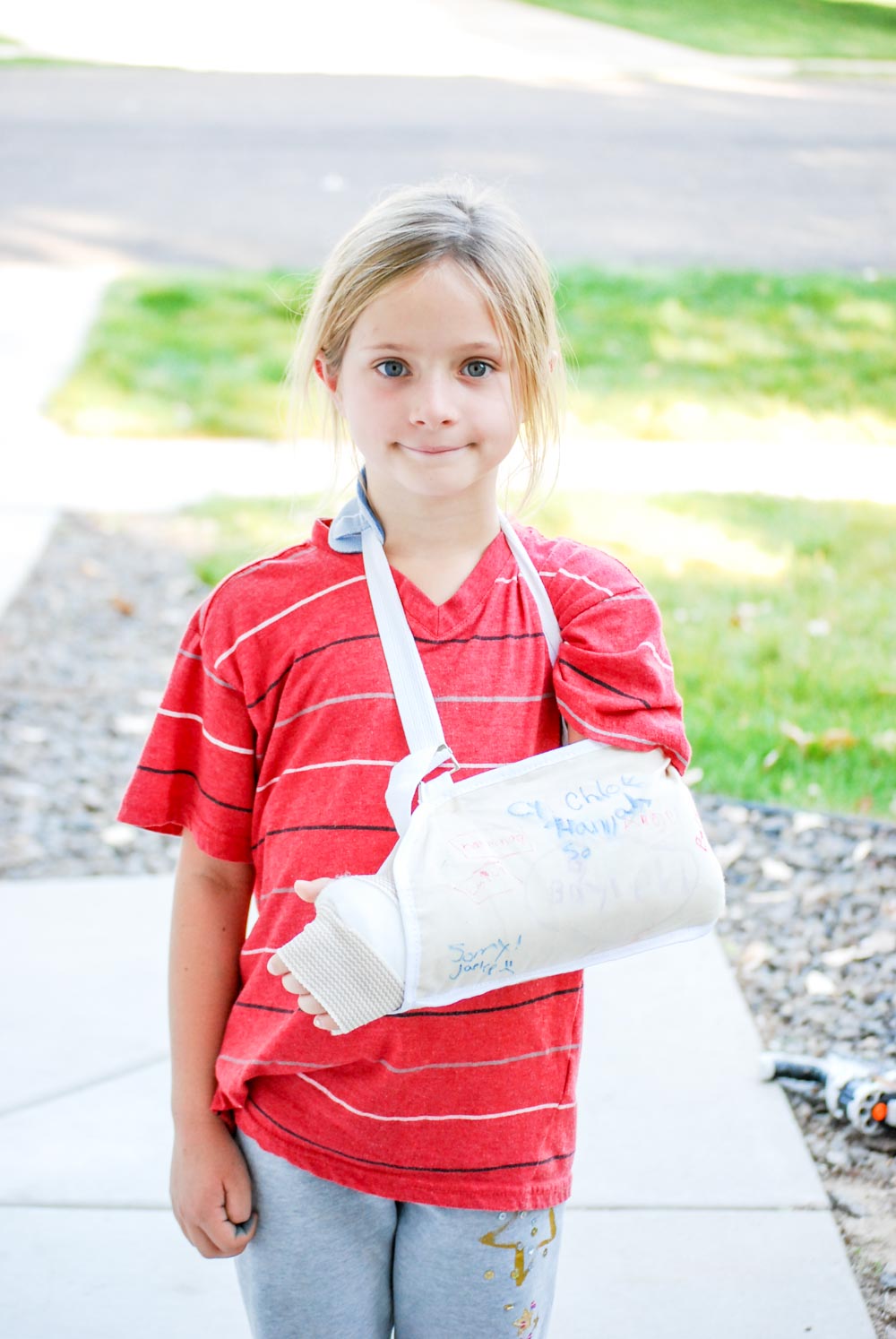 I think Jaelee has really liked the attention though. She got a nice card from her whole class, she’s had everyone sign her sling and her cast and everywhere we go someone asks her about it. She tells everyone the same thing. I fell off a balance beam and put all my weight on my arm.