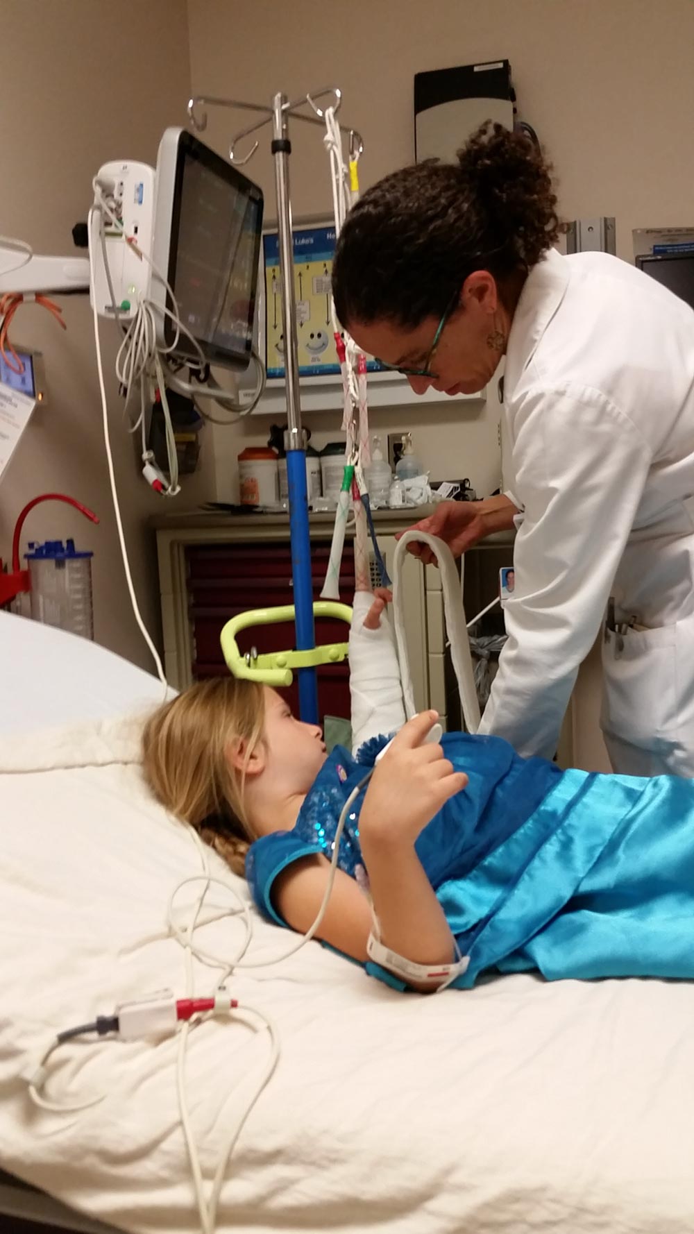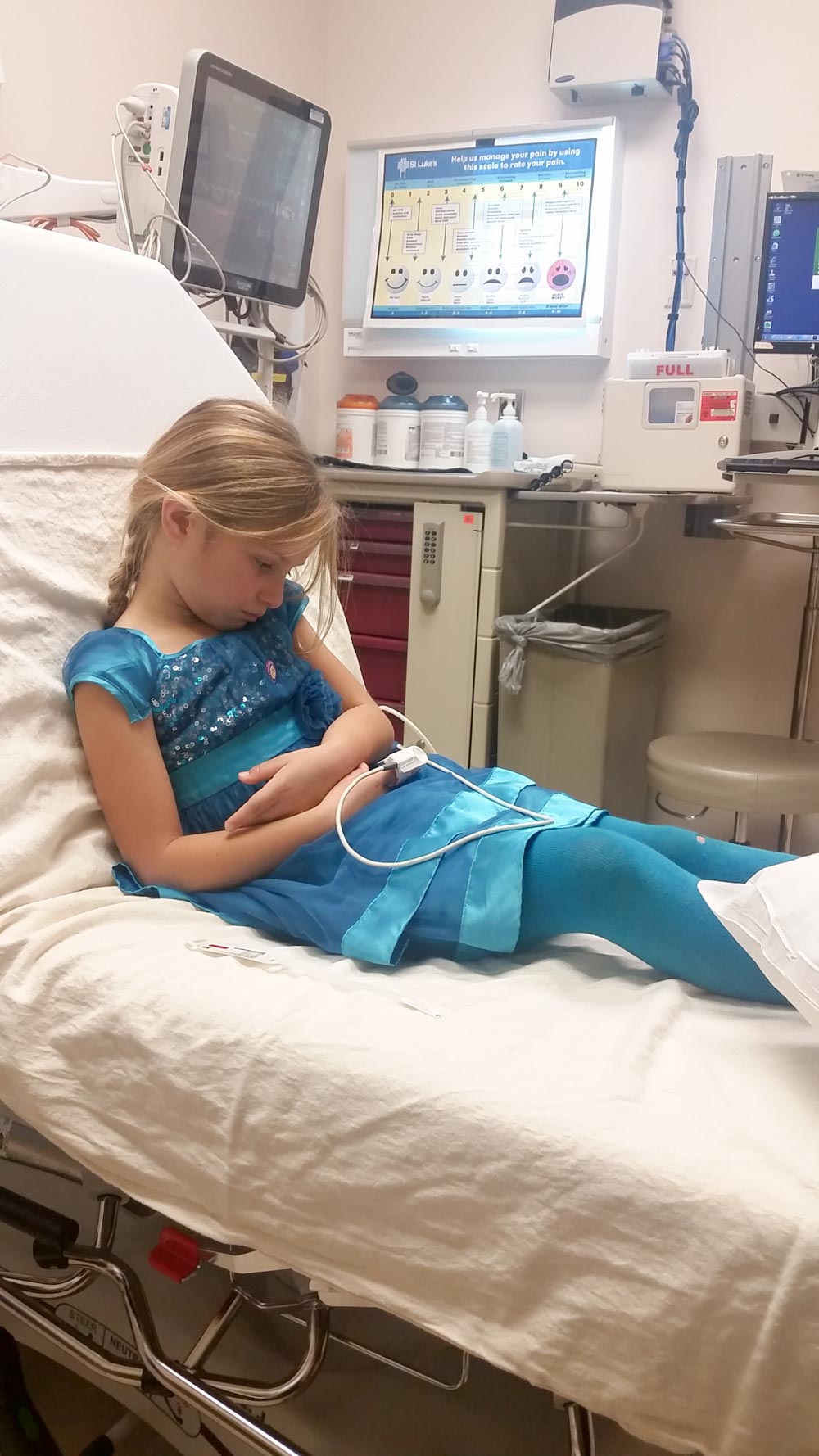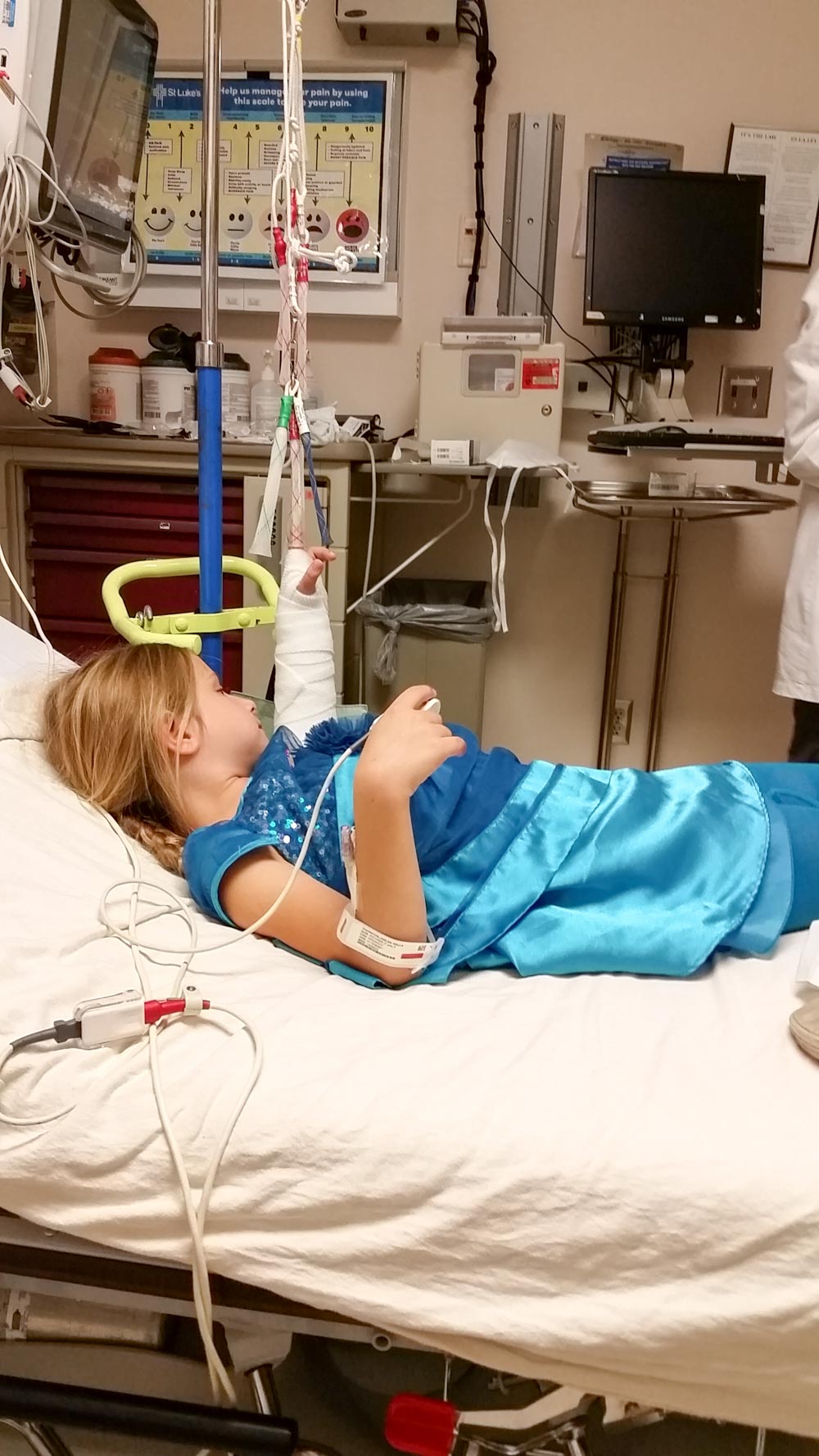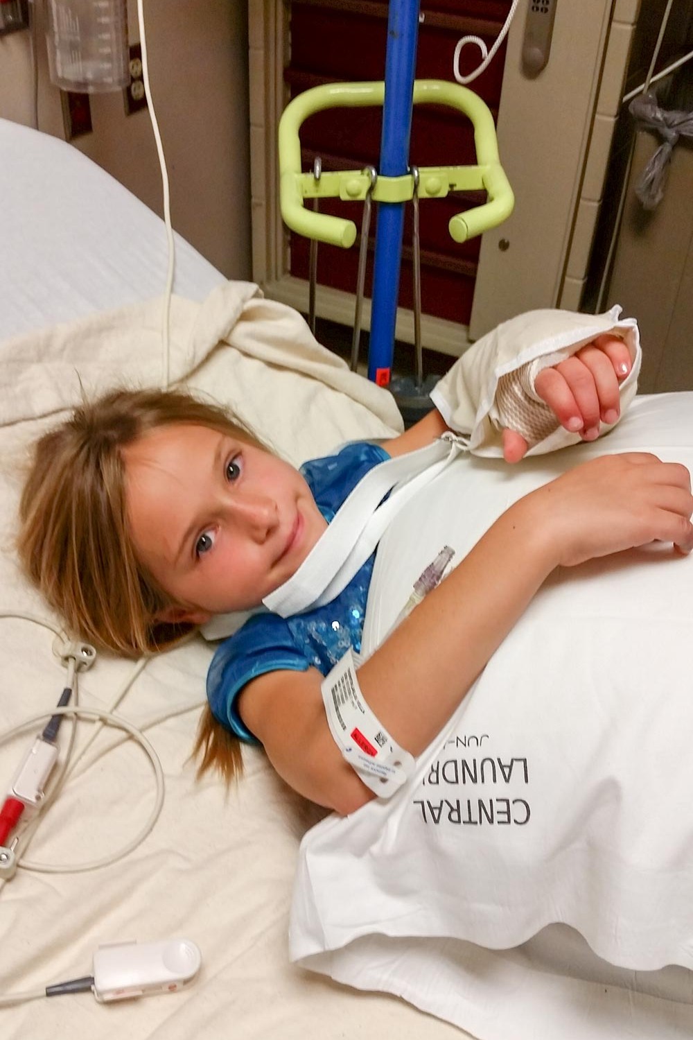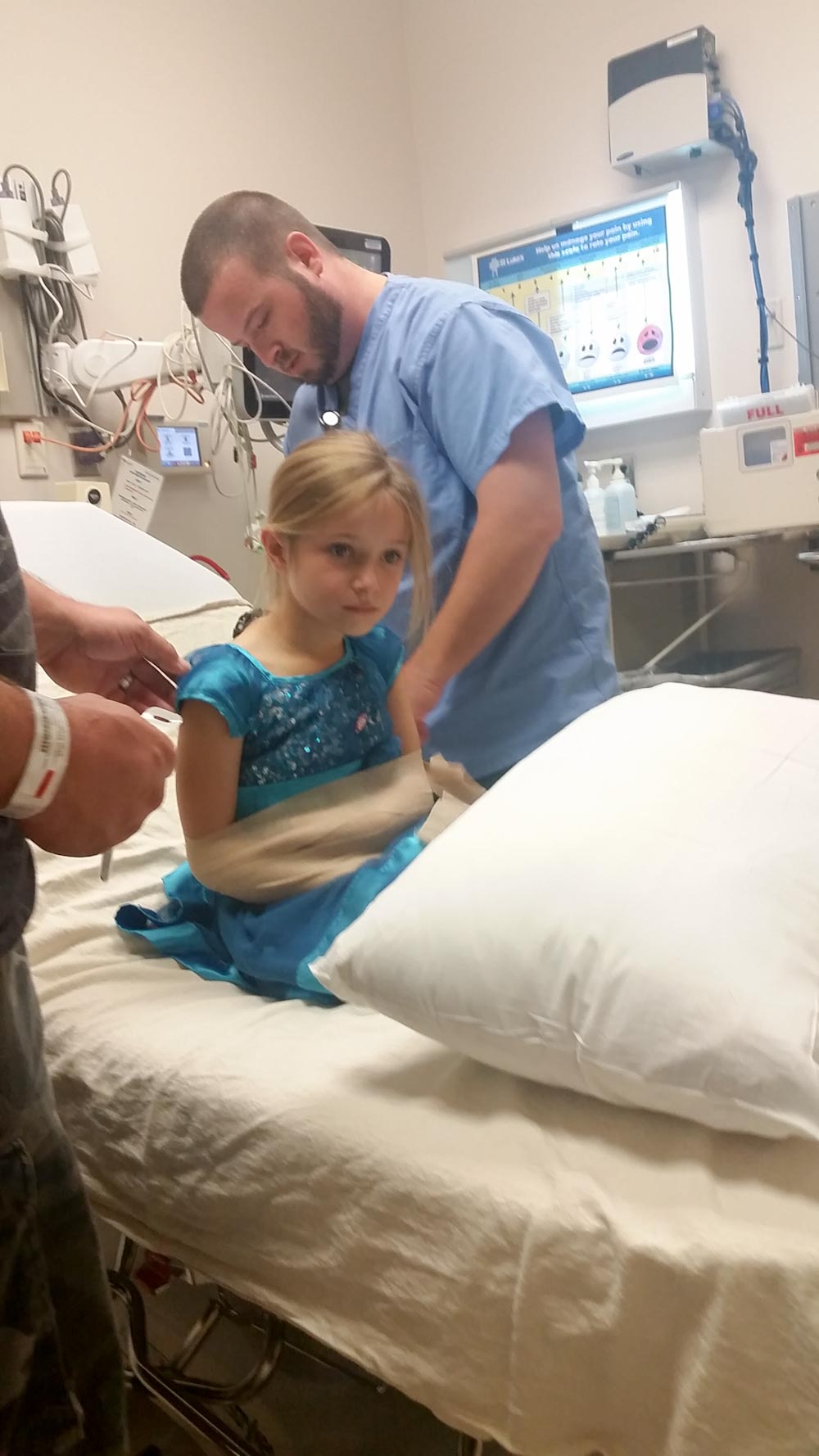 At the ER they put us back into a room right away. From there however it took forever. We ended up being their for 6 hours. She had multiple x-rays, they reset her arm and finally put a splint on it. It turns out she broke both bones in her arm and the doctor was concerned she may need surgery. We are still not sure if she’ll need surgery or not. The orthopedic doctor says it looks pretty good but we wont know for sure until she gets her cast off in 3 weeks. It has been quite an experience.