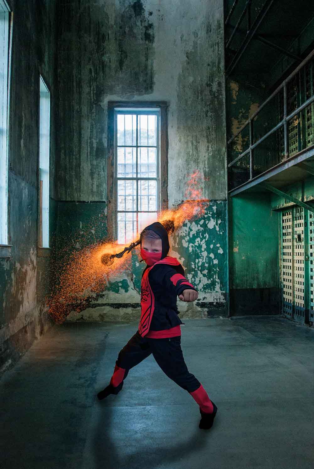 I took a picture of the kids in their costumes and composited them into backgrounds to match their costumes. It was pretty fun to do.