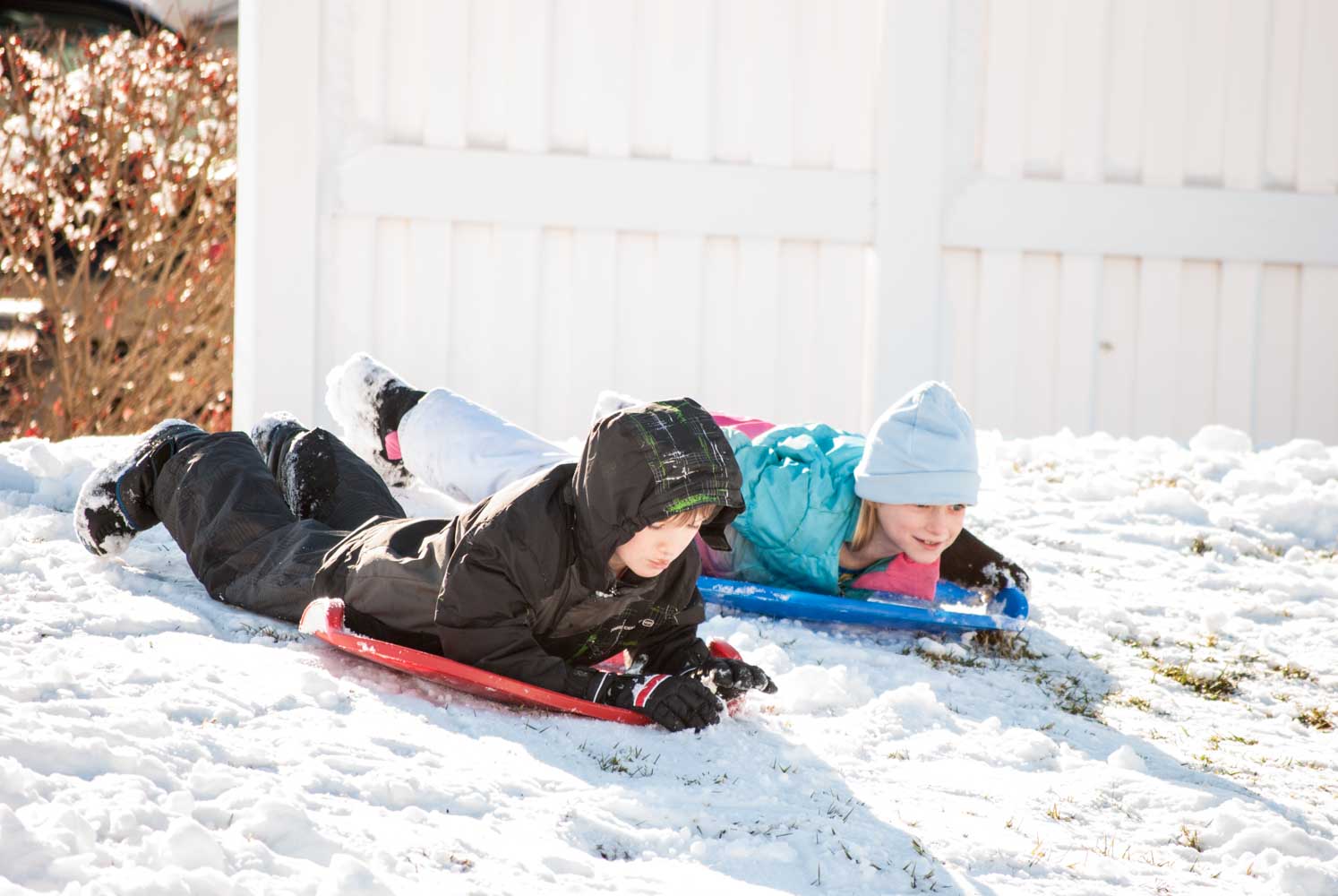 Earlier before we went over to their place we took the kids to a little sloping lot by our house and let the kids sled. Then they got in a snowball fight with Greg and one of the neighborhood kids. I didn’t get any pictures while we were at Darin and Jess’s but I got lots of the kids sledding.