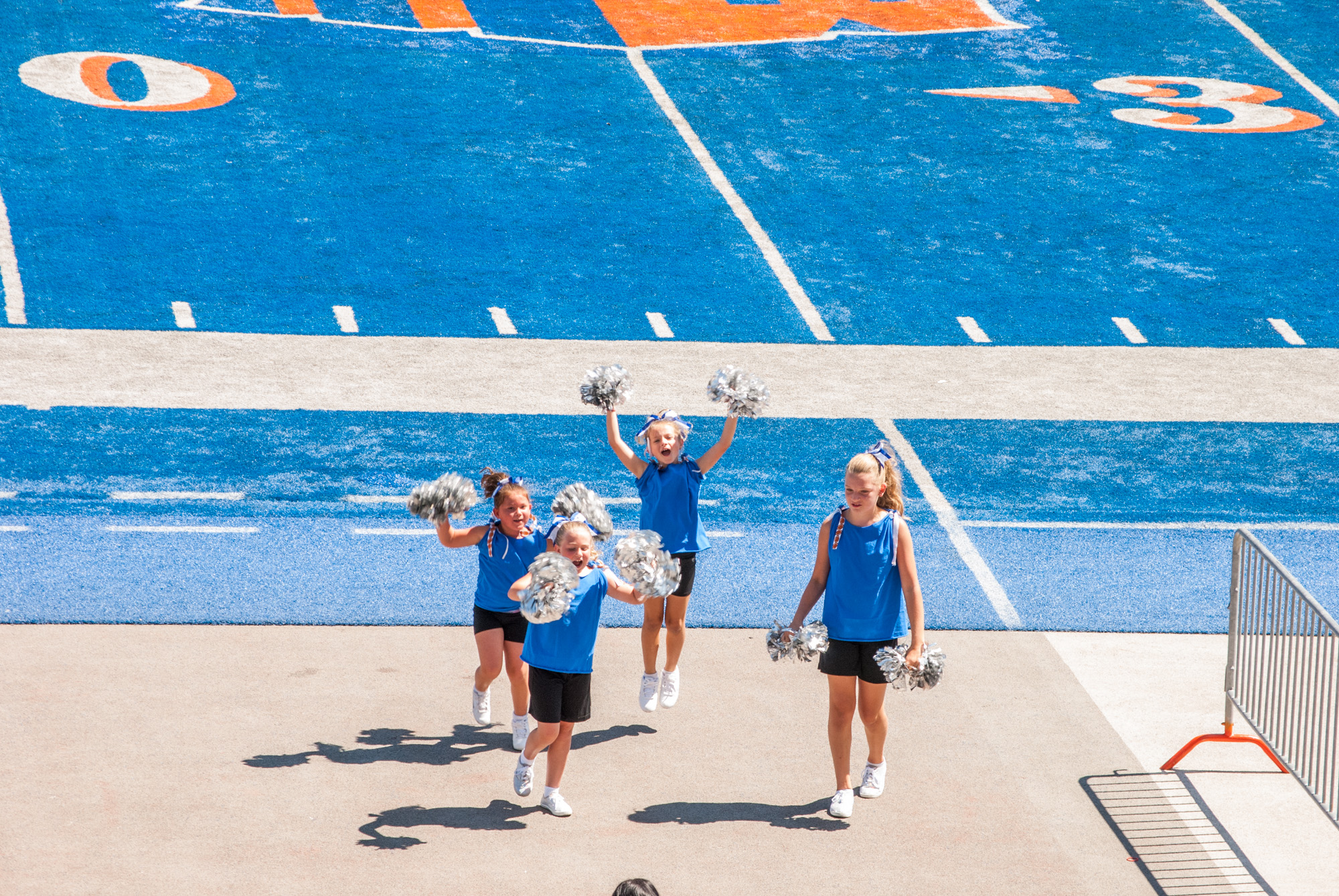 The kids had a jamboree at Boise State. It’s where they have a quick 12 minute game and get their team and individual pictures taken on the blue turf. Because of the flooding in Louisiana Jaelee didn’t have her uniform yet so they wore their shirts her coach put together. Small price to pay for the horrible flooding going on there. Anyway we had a great time.