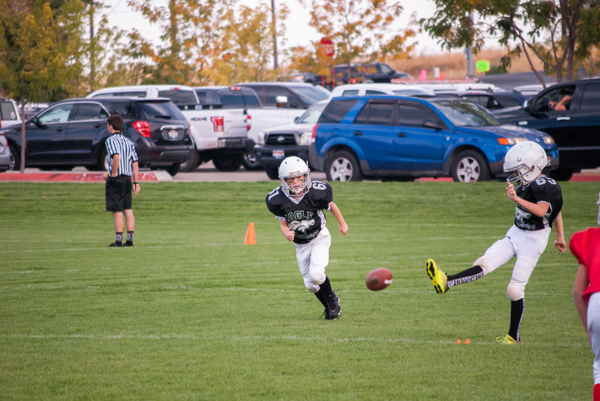 I was a little disappointed in this game. I felt like Jayse didn’t get to play very much. He was on the kick off team and so basically they would kick the ball he would run and the other team would get the ball and the play would be over. Jasye’s turn on the field would also be over. I think he was put in only for a couple plays on the offensive line, big bummer. As much as I worry about him playing it’s fun to watch. I’ll always take pictures though so here they are.
