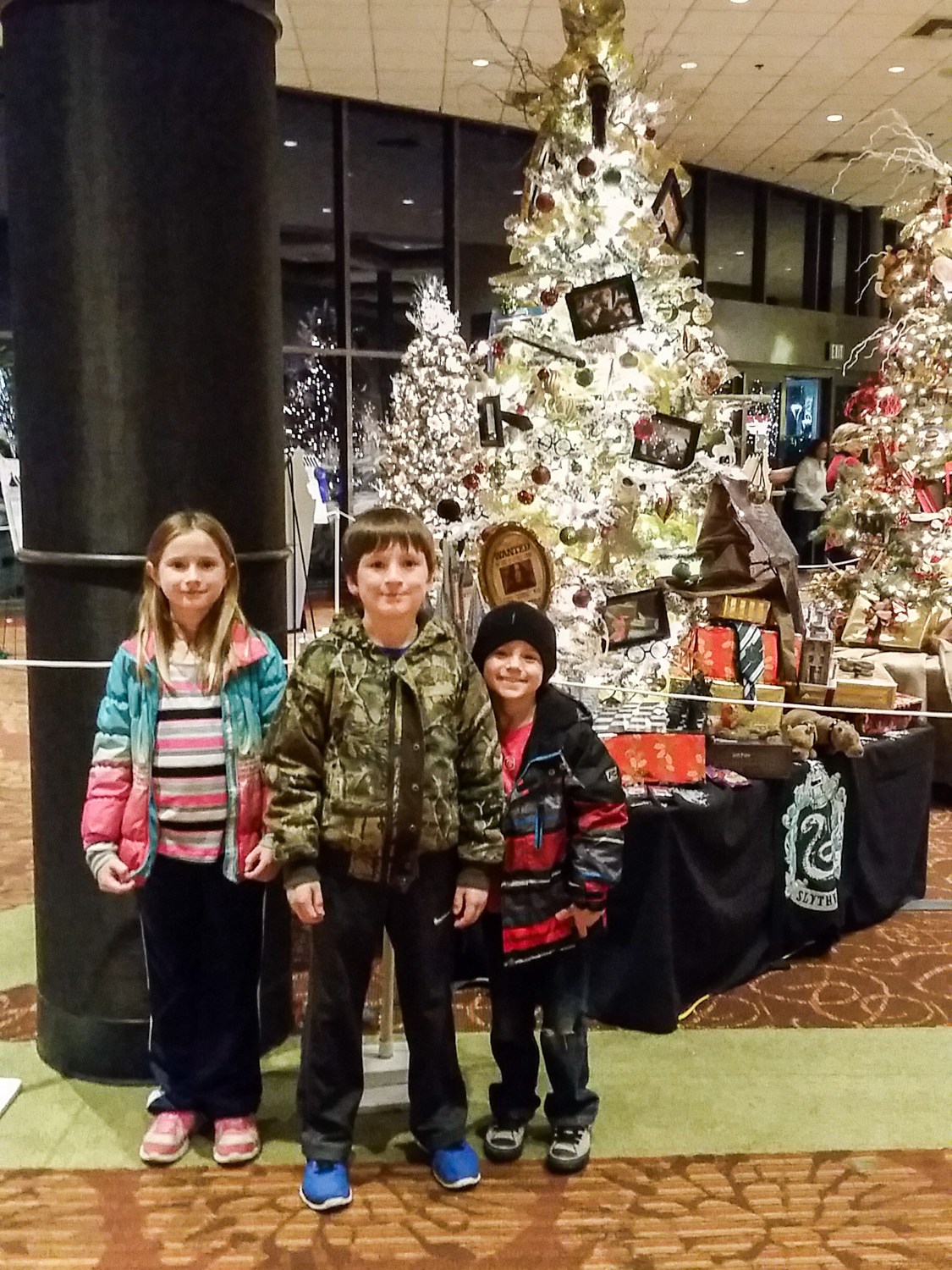 Brandi and I took the kids to the Festival of Trees on Wednesday night. I hadn’t ever been there before. It was pretty neat. A lot of cool trees. They had a kids room where they could make an ornament, make a card and see Santa. It was pretty packed in there and the wait to see Santa was 45 minutes so we let the kids make a card and color and we left the room.