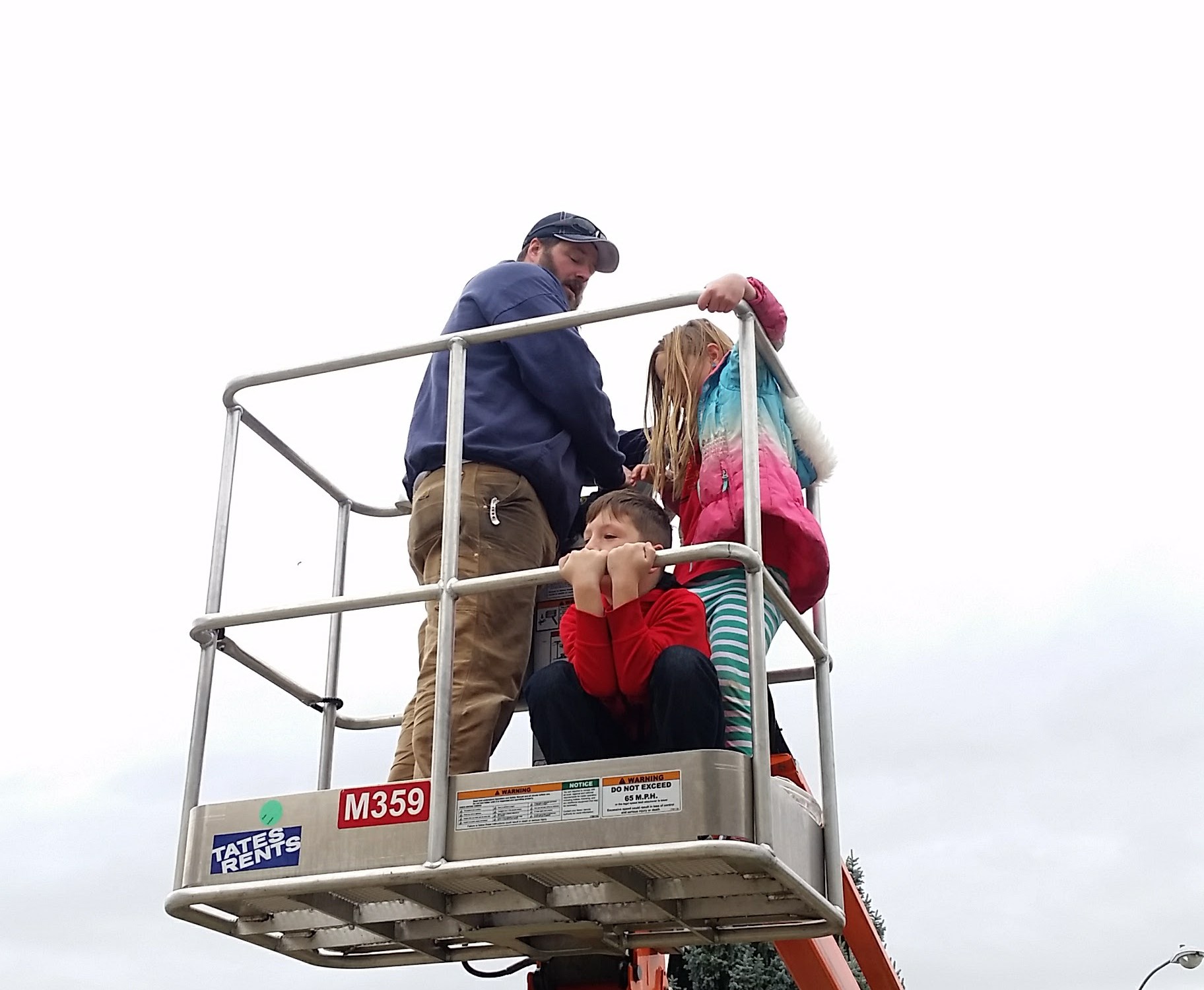 The kids had a great time being in the basket with him helping put up the lights.