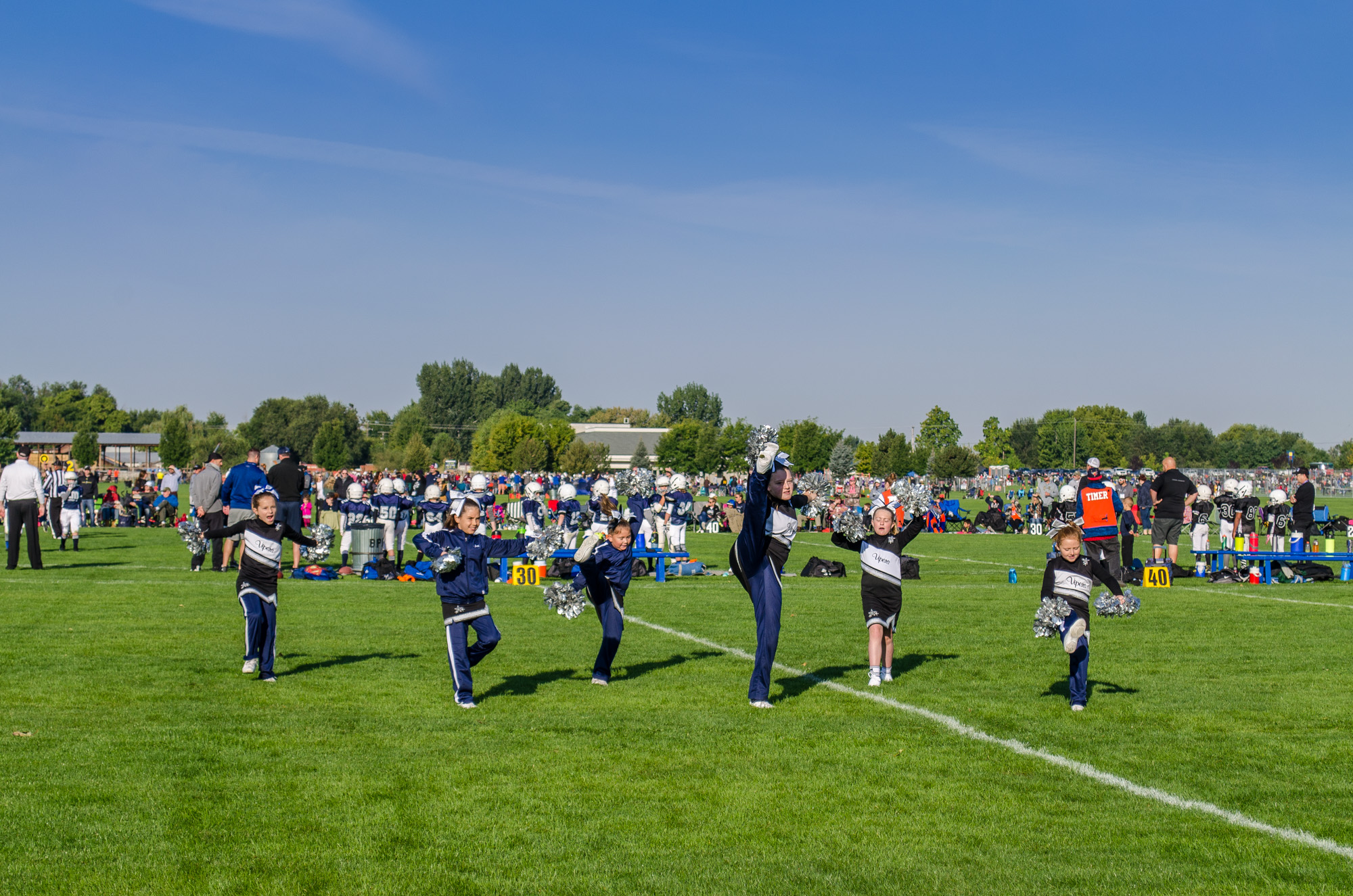 For the kids 2nd game they were at the same time, on opposite sides of the park. I walked back and forth between Jaelee and Jayse’s game. I felt like I didn’t get to really see either very well. I did see Jaelee’s half time cheers and the end of Jayse’s game. It was already pretty cold out for September but walking back and forth kept me warm. Greg stayed and watched Jayse’s game. They both did really well from what I saw.