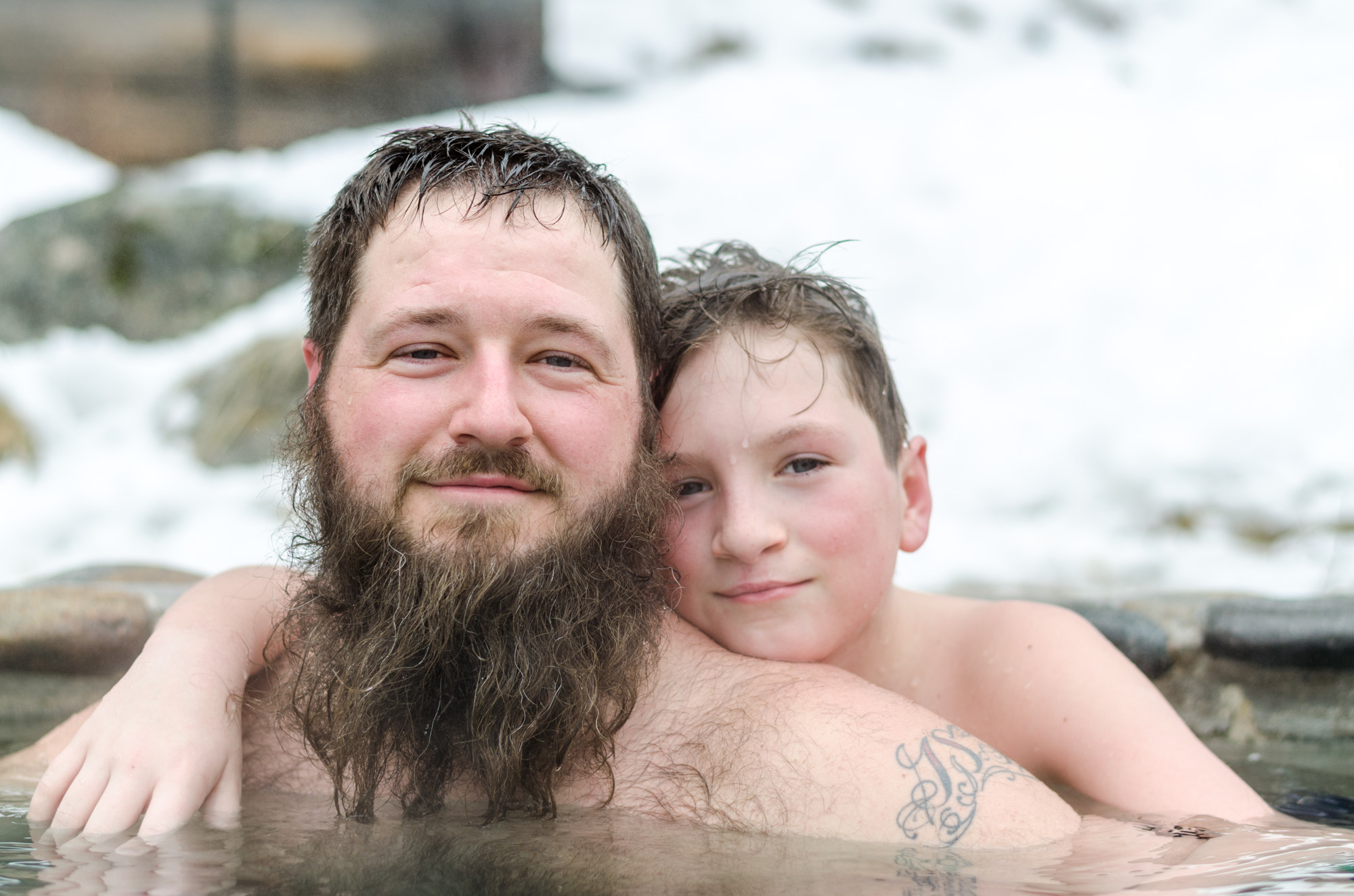 On our way home we like to stop at Gold Fork Hot Springs, it’s one of our favorite spots. There’s just something cool about being out there with the snow, in our bathing suites relaxing in hot water.