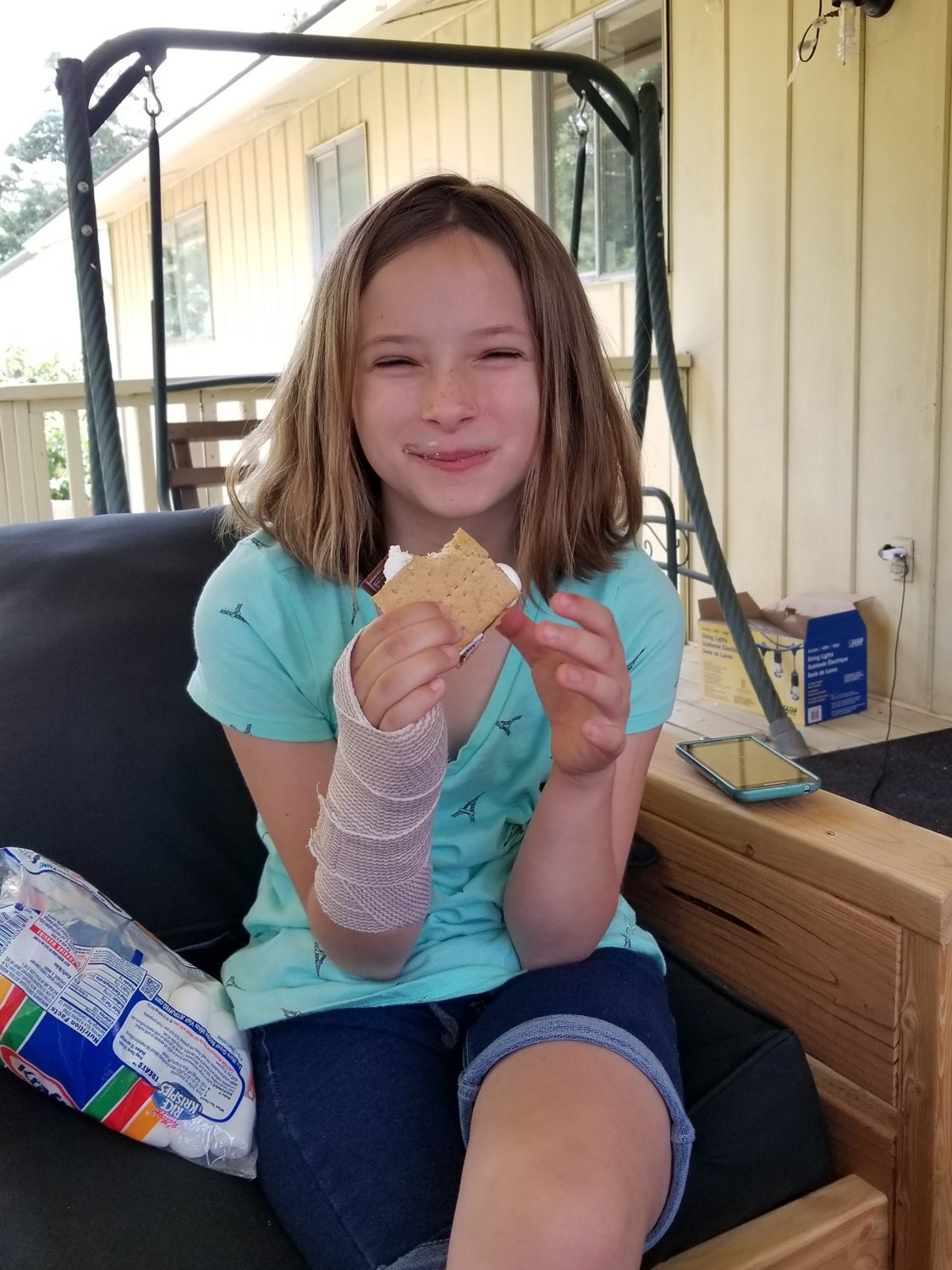 With our new patio chairs I had to add a table with fire in the middle. I thought it would fit perfect and we could sit out here and eat or just enjoy the fire. Turns out it’s awesome! When we got back from Pocatello we went out onto the deck and made s’mores. I love it.