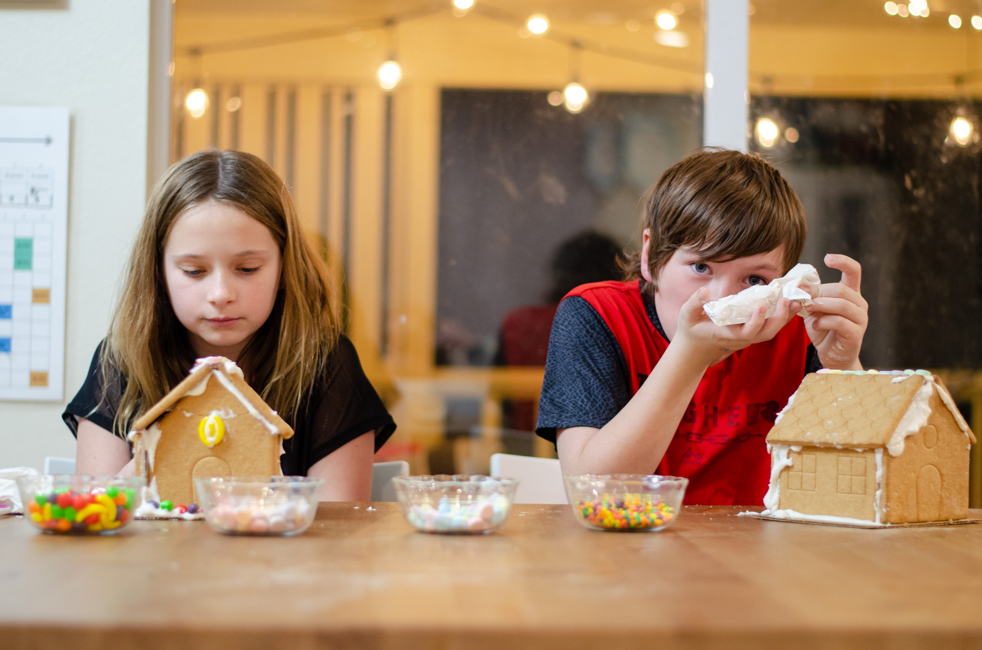 We made our yearly gingerbread houses. I had bought kits last year that we didn’t have a chance to use and they were still good so the kids put them together this year. I think next year we’ll have to try the graham cracker and our own frosting gingerbread’s like my sister in law does. It looks like much more fun and way more creative!
