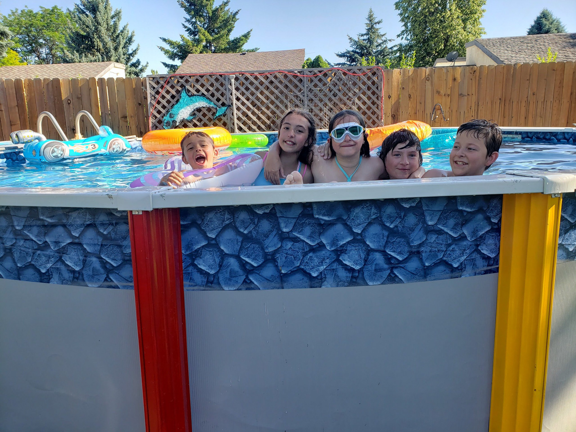 The kids went swimming at their friends house
