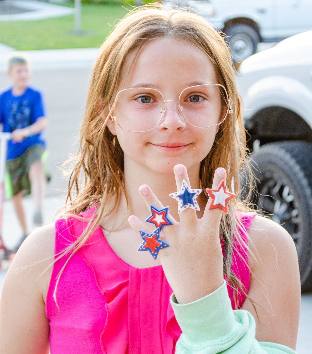 After the movie we stopped at the store to grab a side for the BBQ we were going to. In the parking lot Jaelee found some broken sunglasses. Greg popped the one lens that was left out and Jaelee wore those things for the rest of the day. You’ll see they were quit something, ha!
