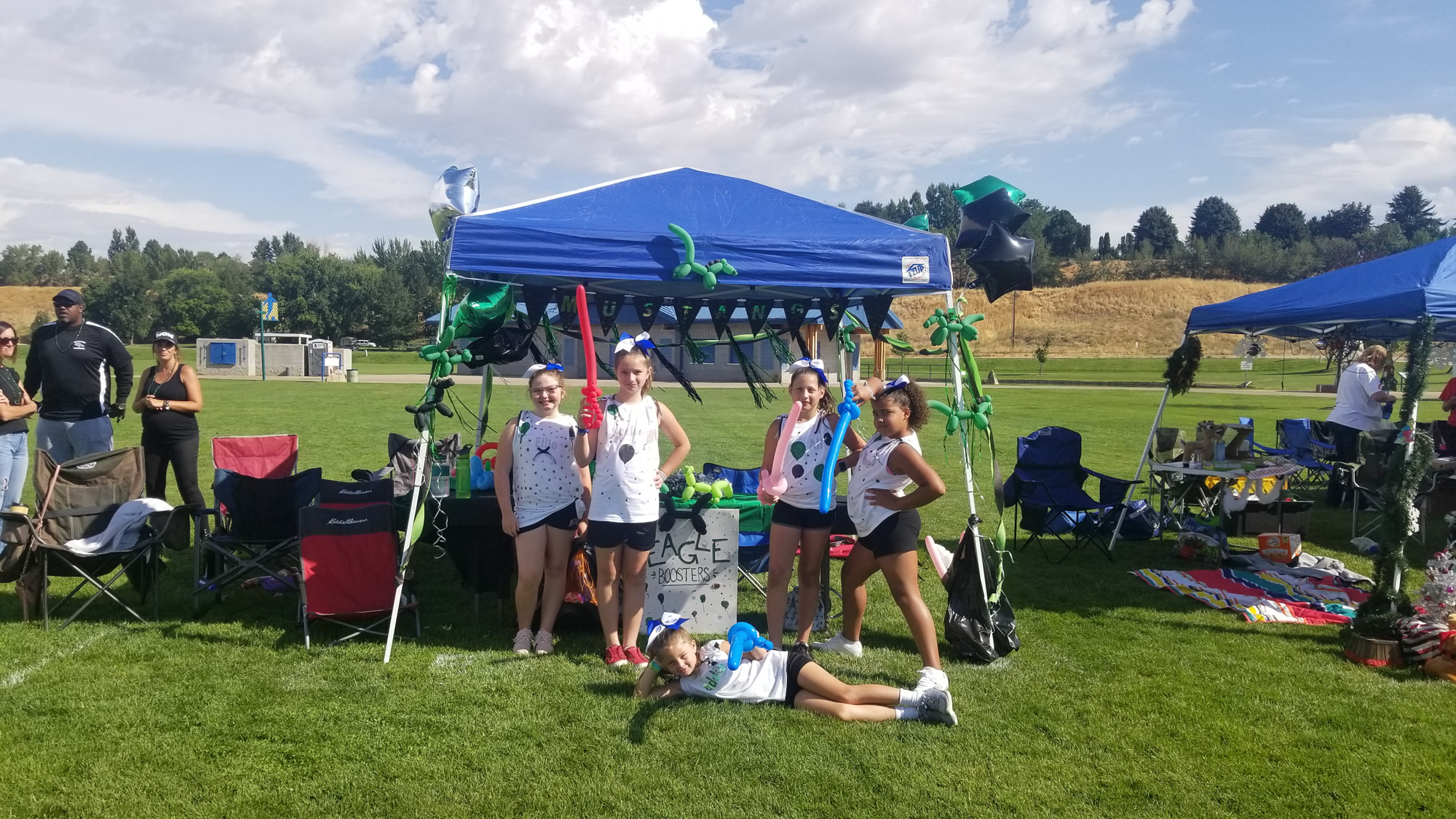 On the day of cheer camp we had to be there at 7 am! Gosh that is early on a Saturday. We had 2 hours to decorate our booth before camp started. We ended up getting it decorated in an hour so we had some time to hang out before camp started. We were lucky that one of the girls Grandma’s learned balloon animals. She made a whole bunch. They really added some fun to our both. I thought our booth was the best.