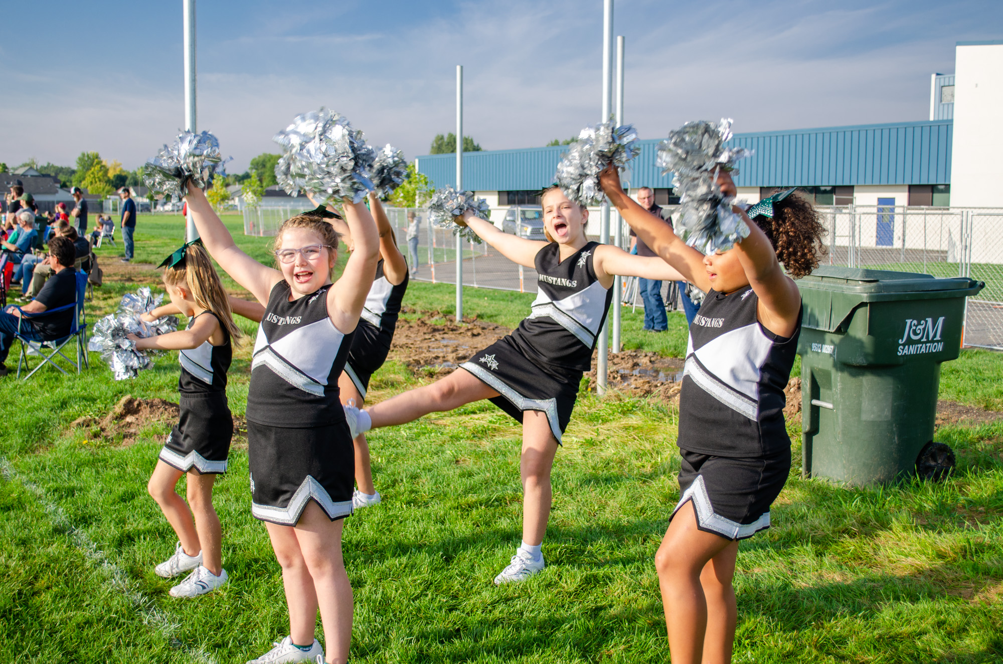 Our second game was in Kuna. They didn’t have any place marked off for the cheerleaders so we were just at the end. It was also kinda wet and muddy but the girls did really well.