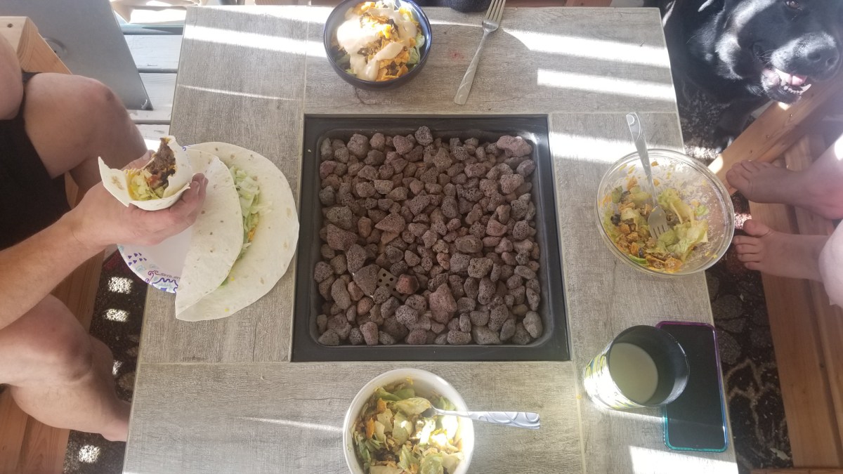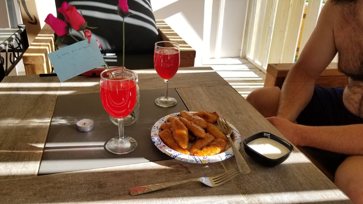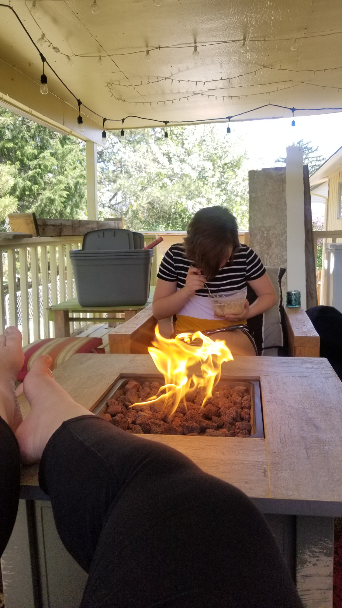 I tried to make dinner fun since we couldn’t go out. I replicated some of our favorite restaurant meals, had themes and some just plain easy ones. The weather was beautiful so we at out on the deck every night. Our neighbor made us some pizza one night that was amazing. The food was good.