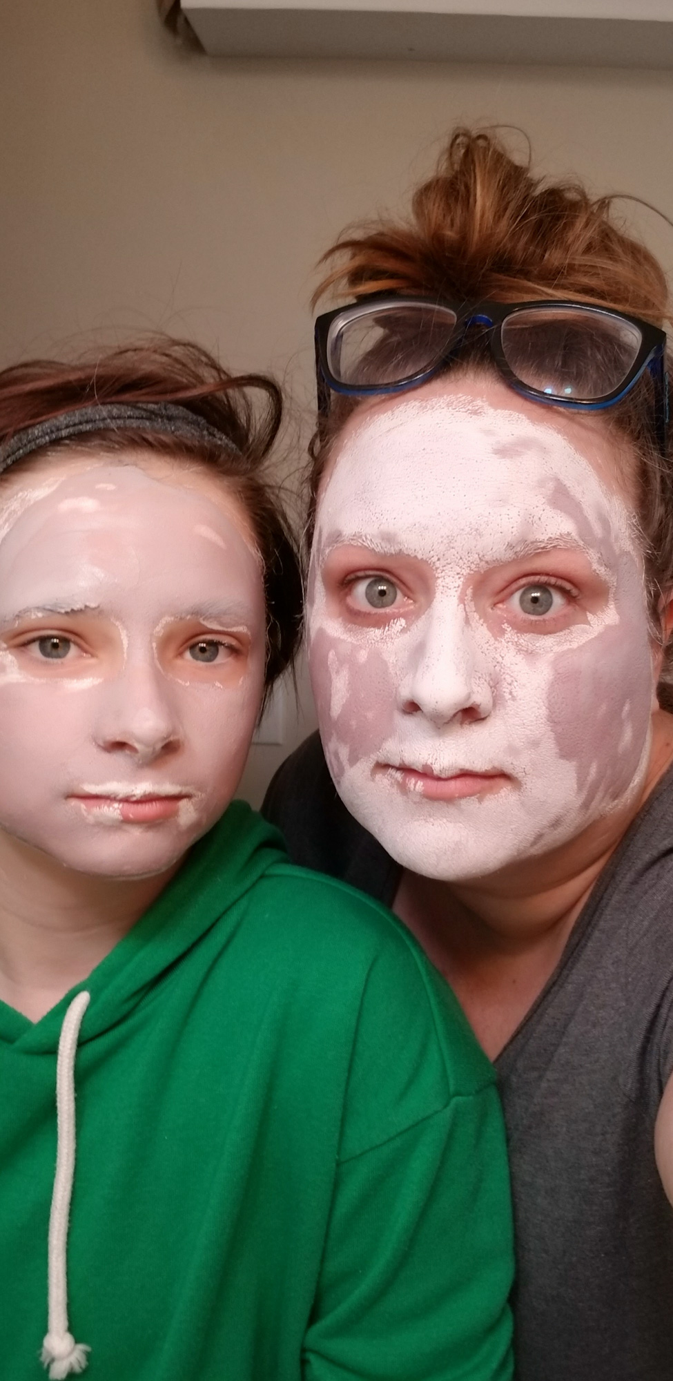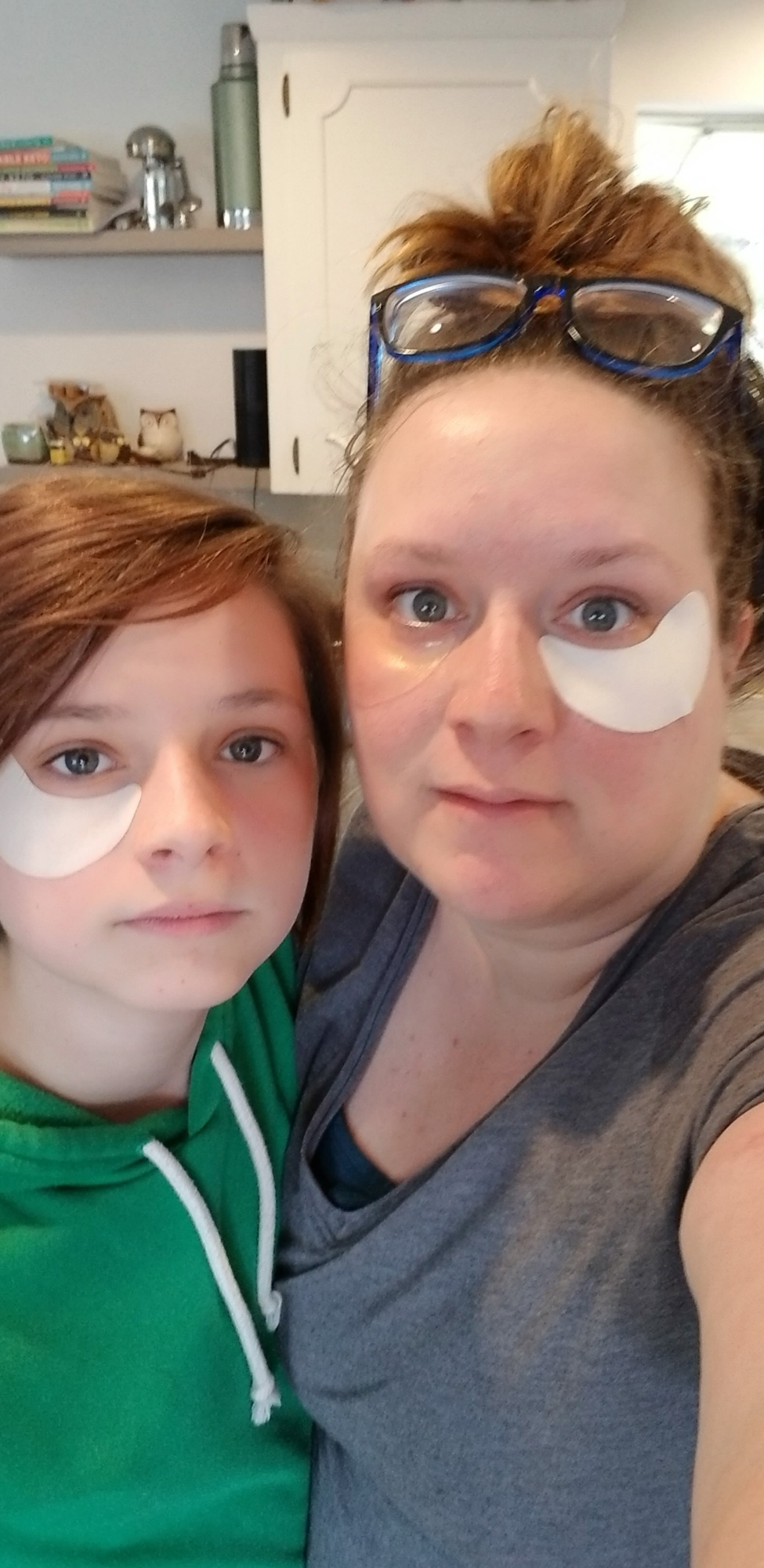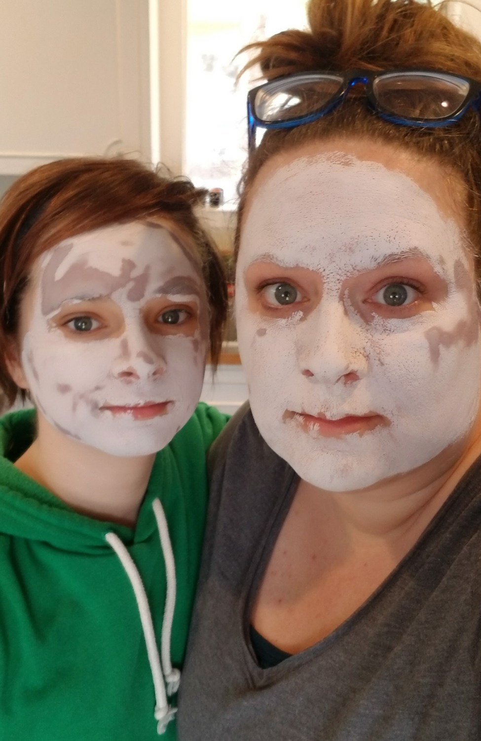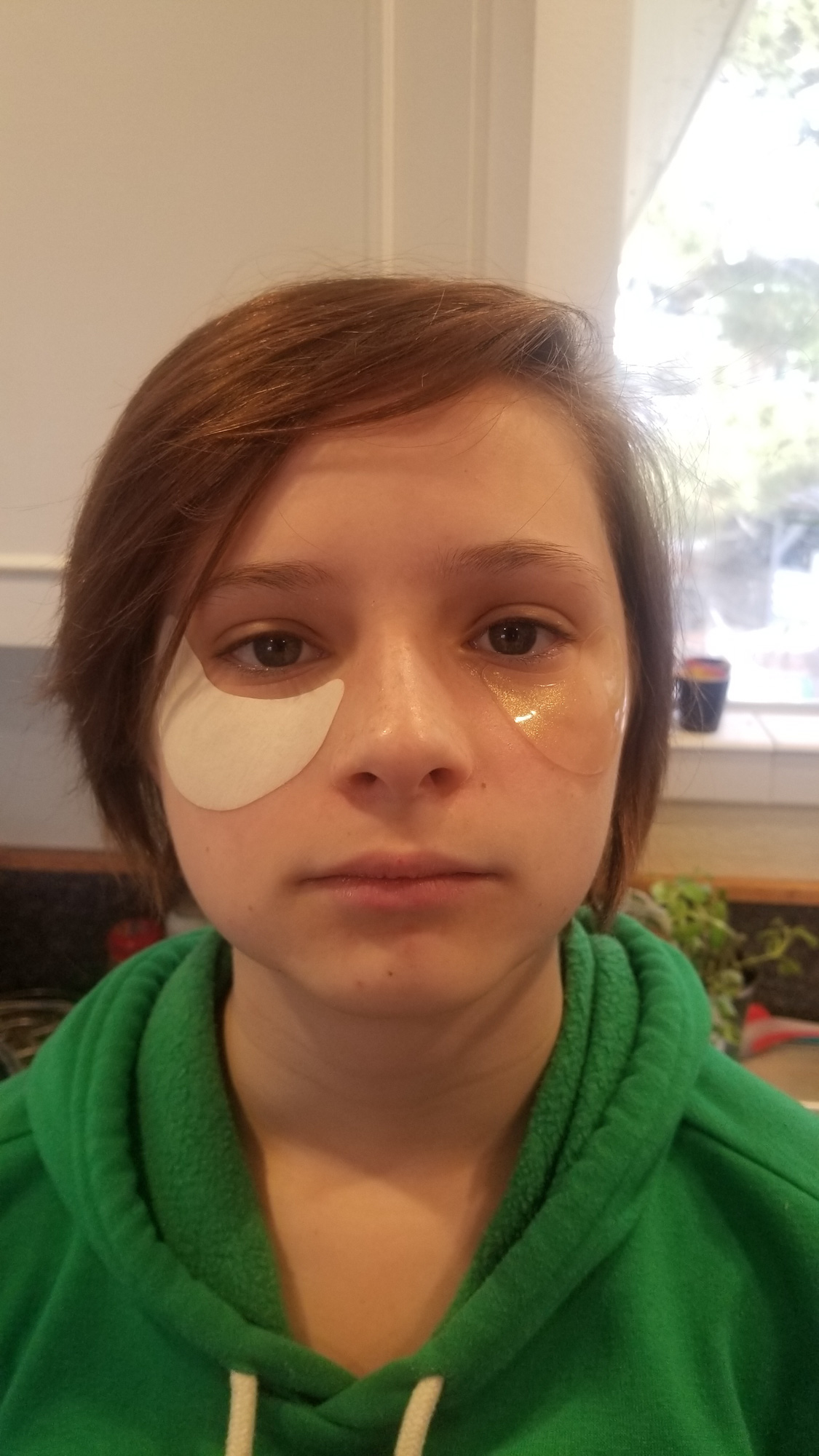 Jaelee and I’s face mask adventures continued, this time we tried a clay one and afterwards we did under eye masks. I had 2 different kinds and we both wanted to try them so we split it and put one on each of our eyes. The clear gel one was pretty cool.