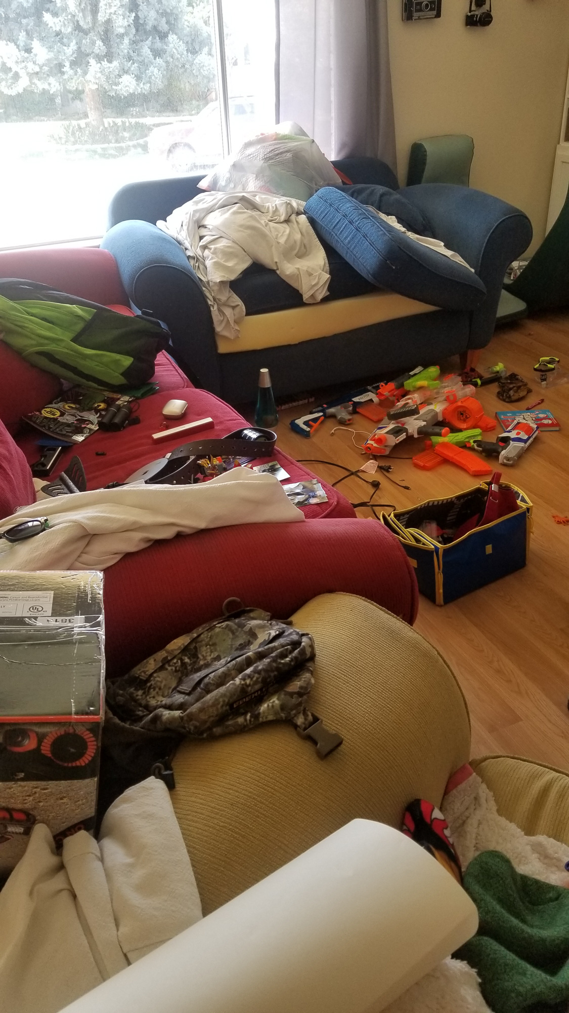 The kids rooms were a mess! Since we were home with nothing else to do I made them completely clean them. I had them take everything out of their rooms besides furniture and pile it in the dining & living rooms. We went through every single thing, made 3 piles – keep, donate & trash. Jaelee ended up with 6 bags of trash and 3 donate bags! That girl is like her dad she keeps everything because she can see it being used for something. I told them nothing went back in their room if it didn’t have a place so if we needed to get totes to put stuff in and add shelves in their rooms for items we would do it. And so we did. We added 2 shelves to Jayse’s room and 3 to Jaelee’s. We got a huge tote for all of Jayse’s nurf stuff and a bunch of different size totes for Jaelee’s room to organize her stuff.