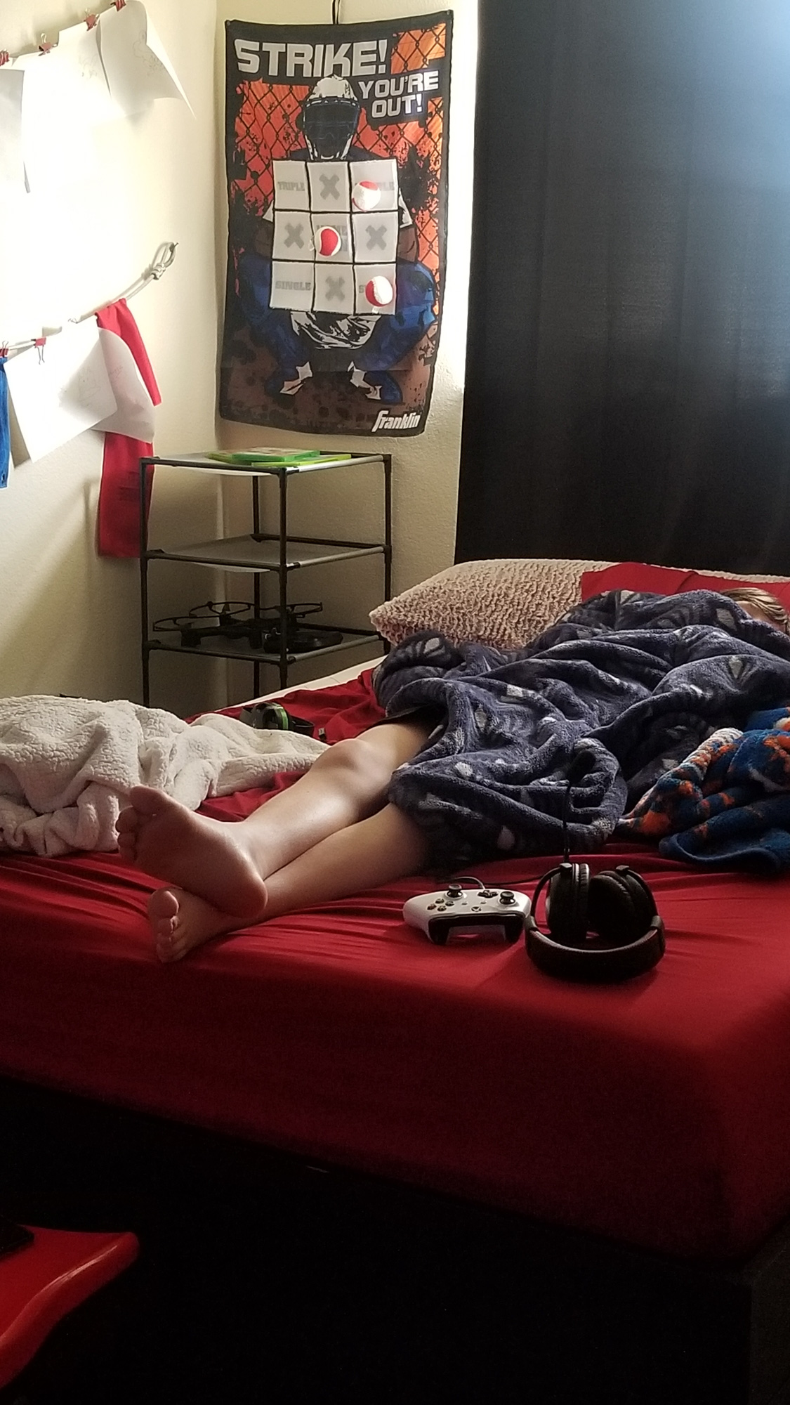 Don’t know how Jayse sleeps like this his blanket is usually bunched up around his face with his legs hanging out.