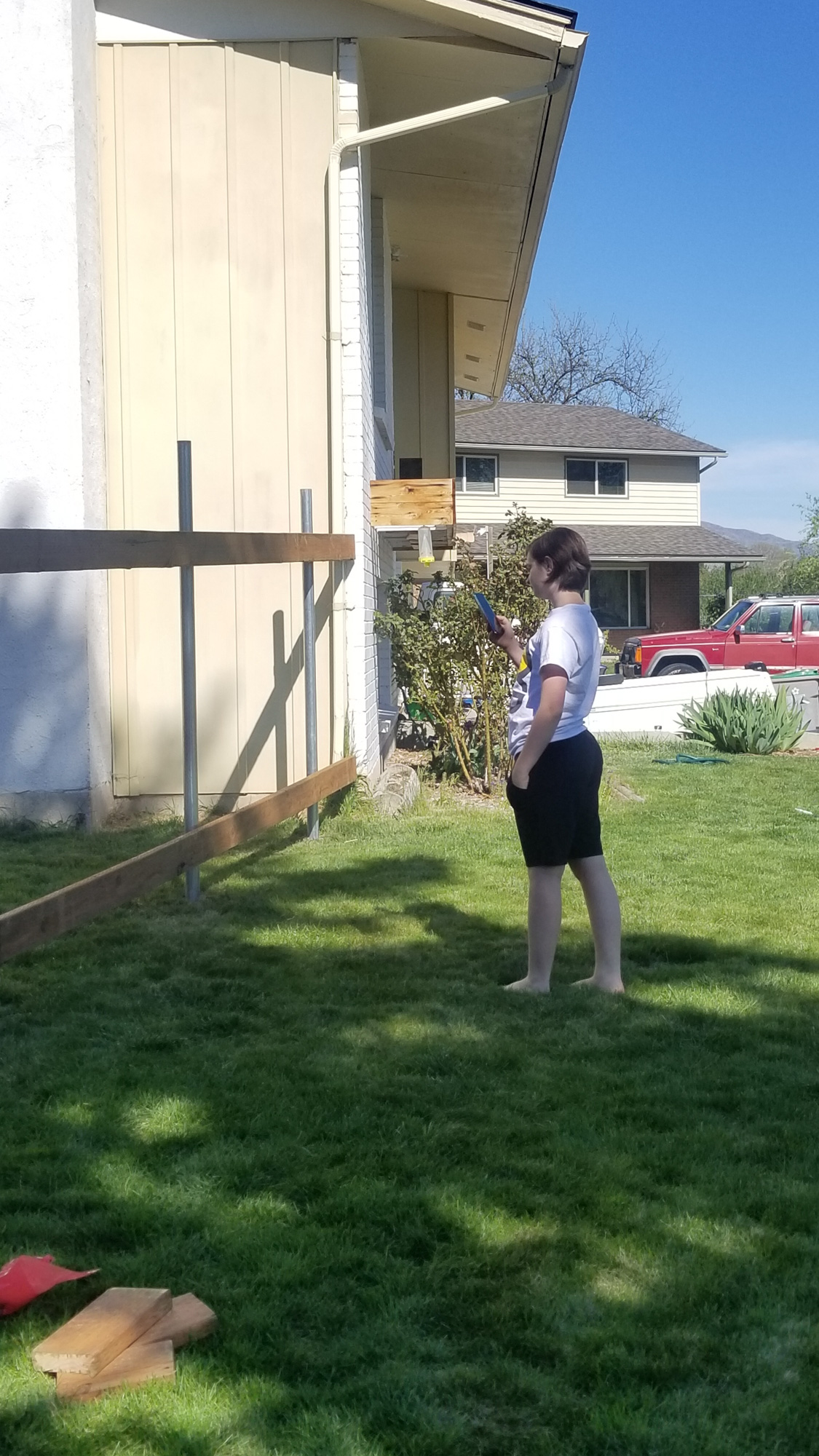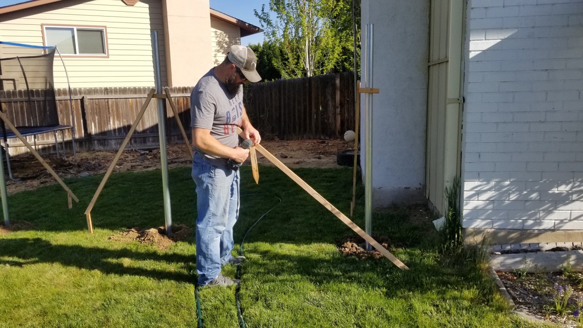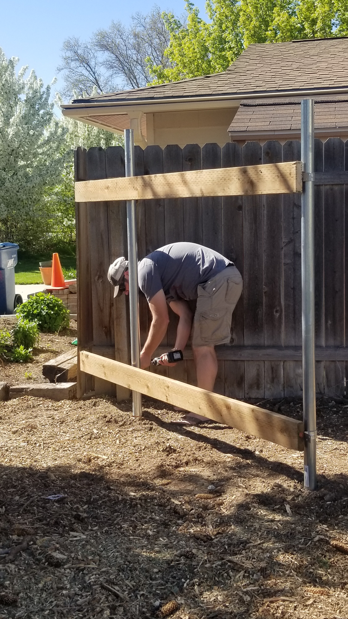 Since we got all the wood cleaned up we were able to do something we’ve wanted to do for years, move the fence up from the back corner of the house to the front corner. Darin came over and helped Greg put the posts in but I helped with everything else. Moving the fence was going to allow us a couple of things. First the kids have wanted a pool forever, this would give us a place to put it and a good place to hide all of Greg’s extras.