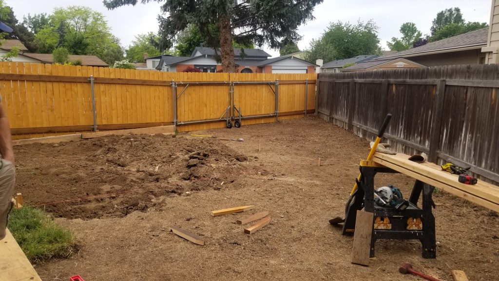We dug up all this dirt and raked it, looks pretty good without the dog run and all the weeds.