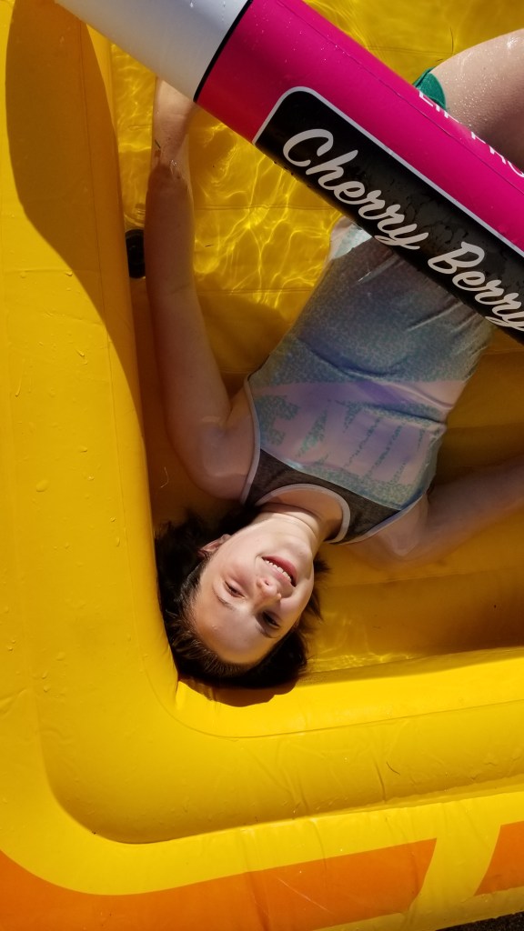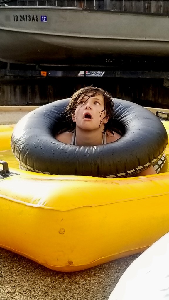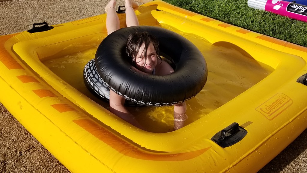 Our pad is all ready, just need the pool. Jaelee couldn’t wait she blew up the barge and used it as a pool.