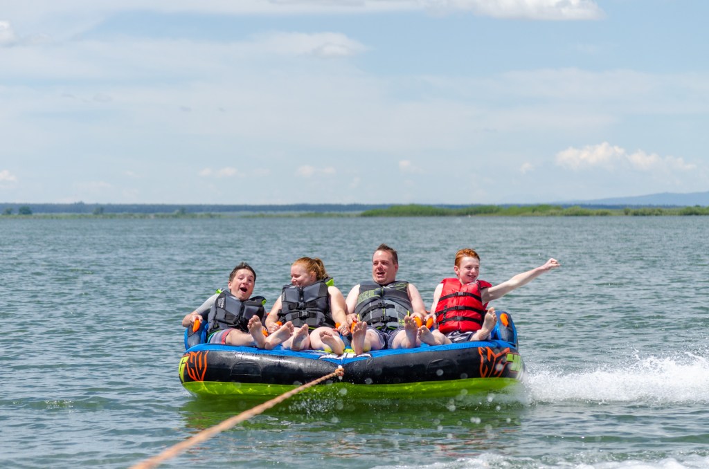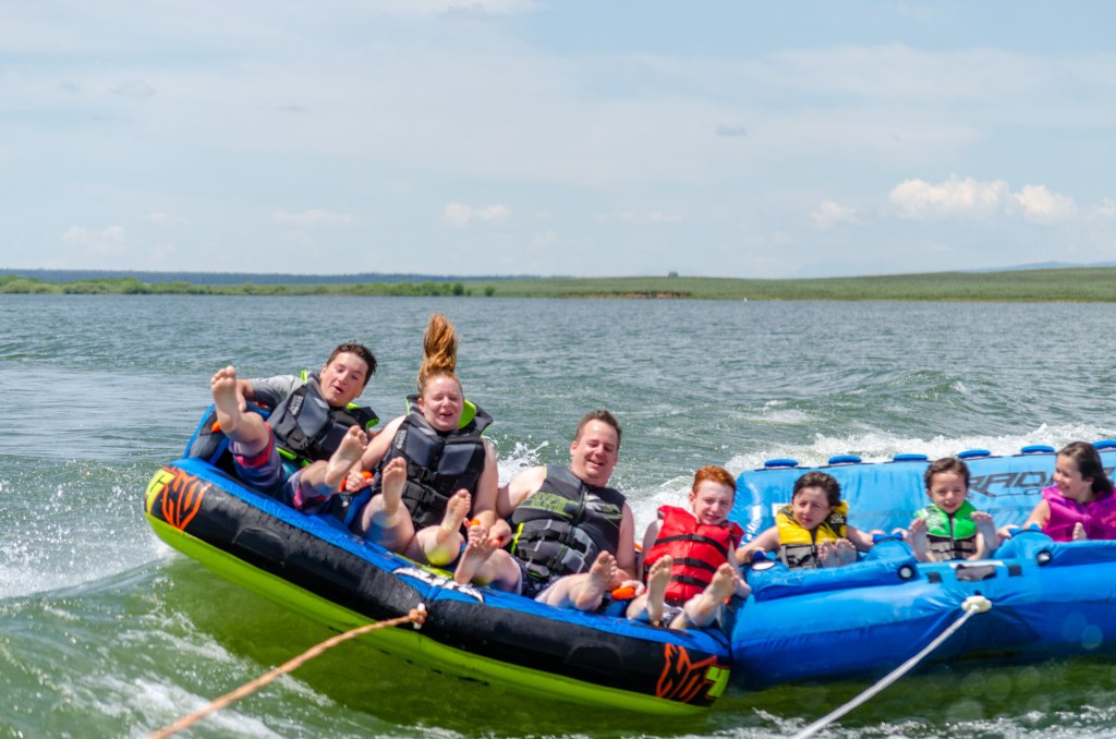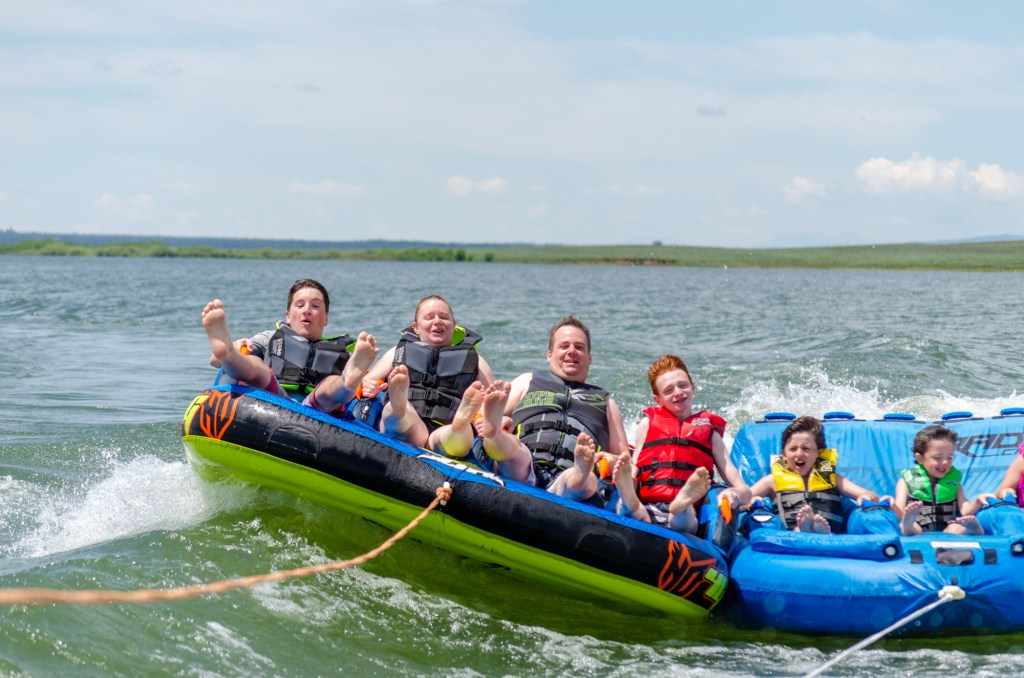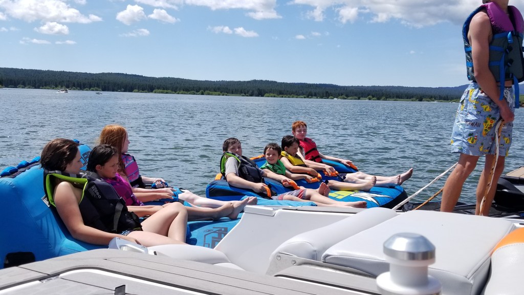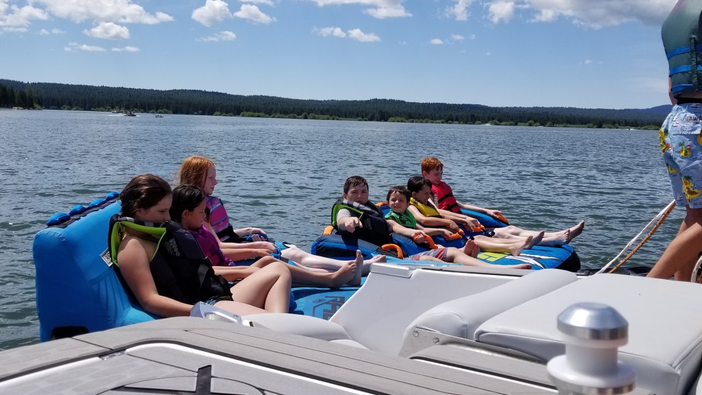 Friday we got up and hung out until it warmed up enough to head to the water. The first group of us went out on the boat for some tubing. Other’s went out on some wave runners or kayaks. The kids could not wait to go out tubbing. I stayed on the boat to get pictures and video.