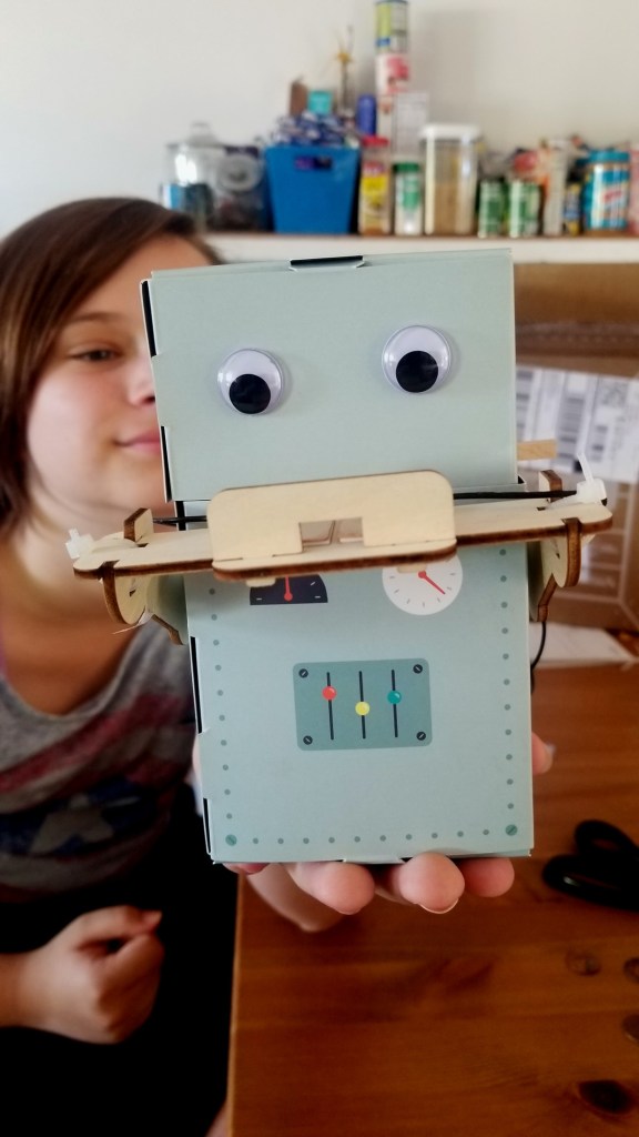 Jaelee made this coin eating robot, I used to have a yellow one like this when I was little.