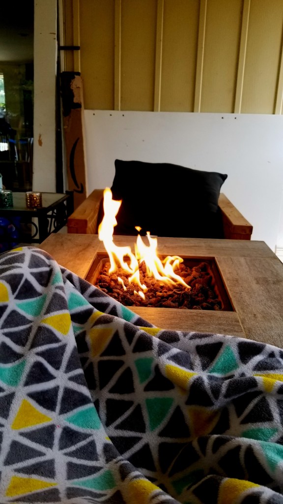 While everyone was gone I hungout on the deck, drinking hot cocoa by the fire and reading. It was kinda nice.