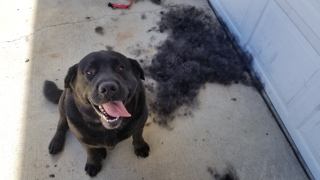 Got a brush called the Ferminator, really helps get all the hair off this guy so hopefully it’s not in the house.