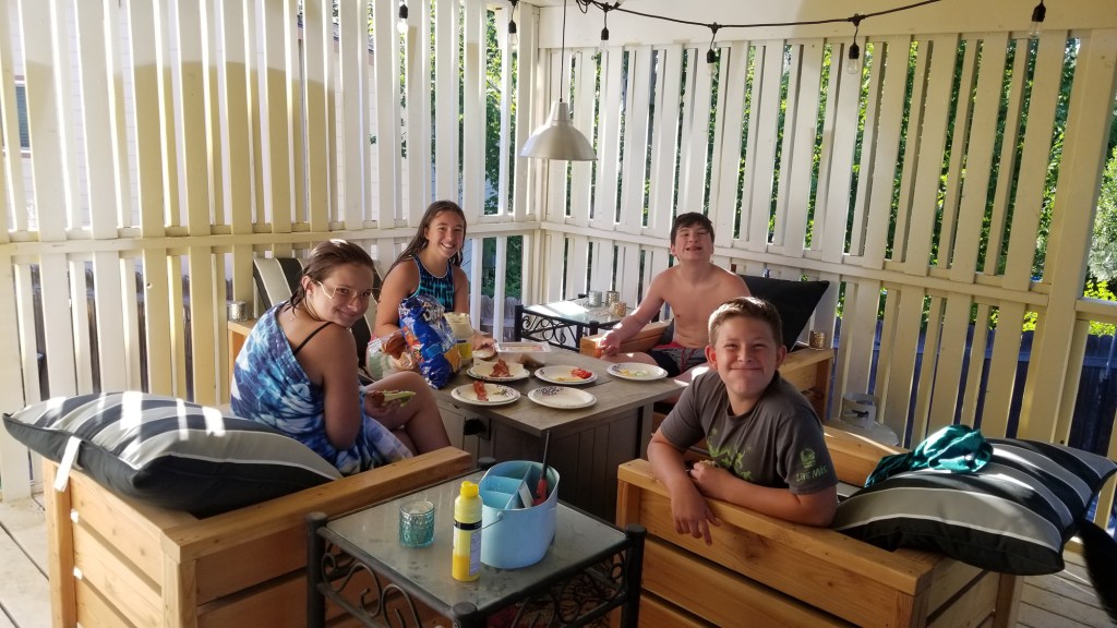 We spent a lot of time in July in the pool. We had friends and family over. We got more and more floaties, I bought some water games. It was the perfect addition for this summer since we spent more time then ever at home.