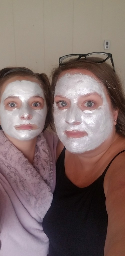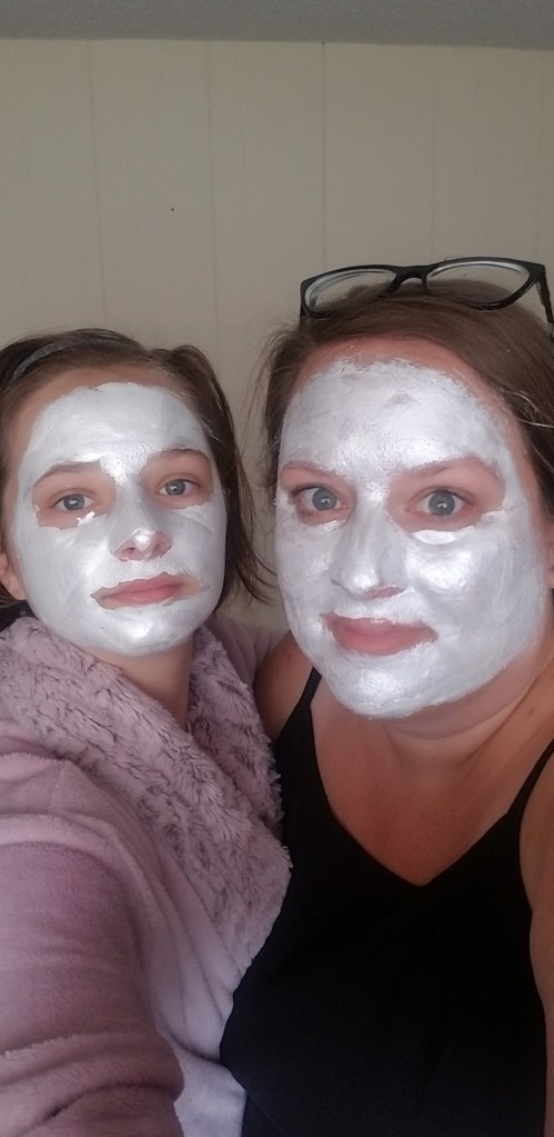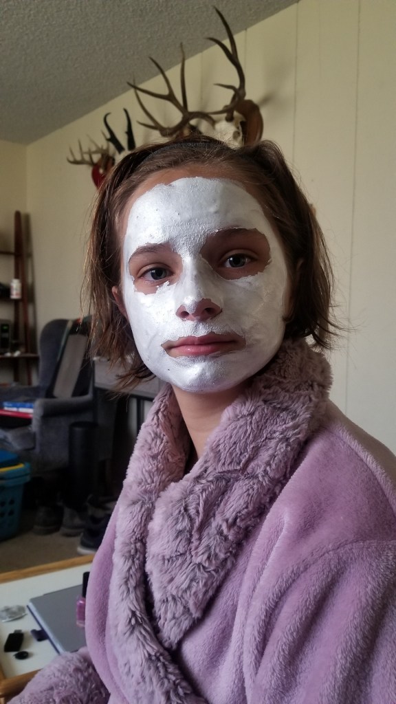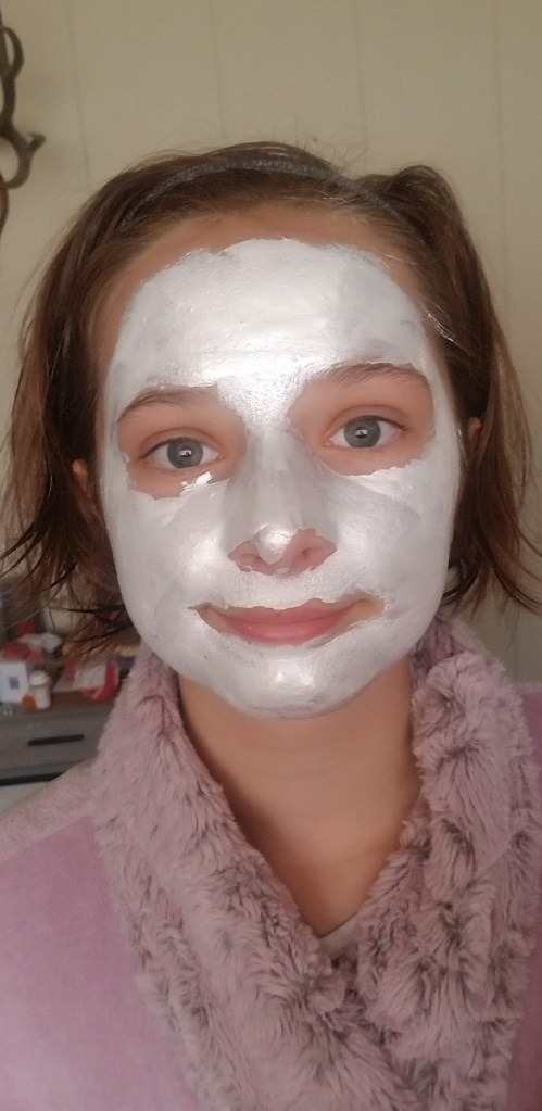 LOL her eyes crack me up! We tried a diamond mask that you peel off. It was fun.