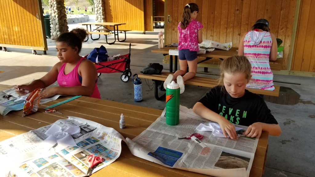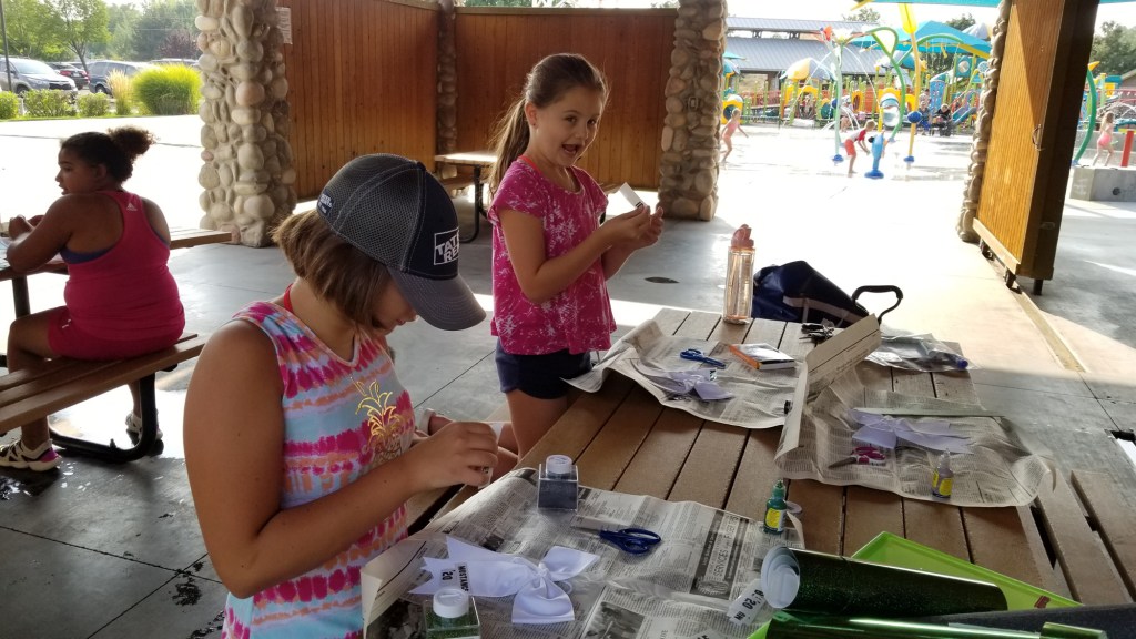 We started cheer, since there was no cheer camp I made our own during practice for the week before Labor Day. We danced, learned jumps and decorated bows.