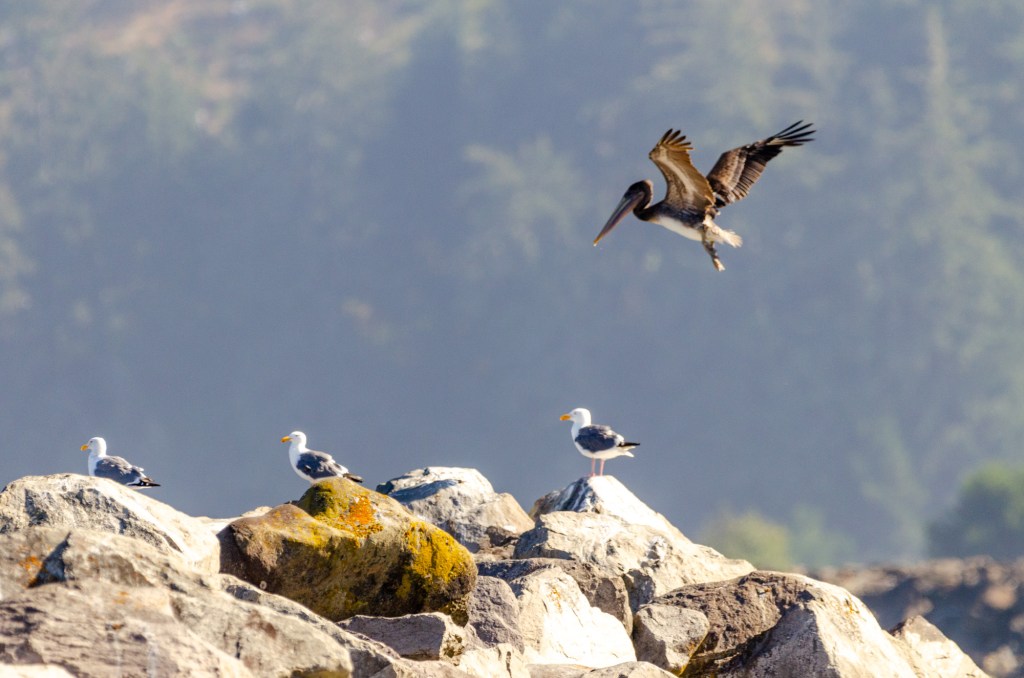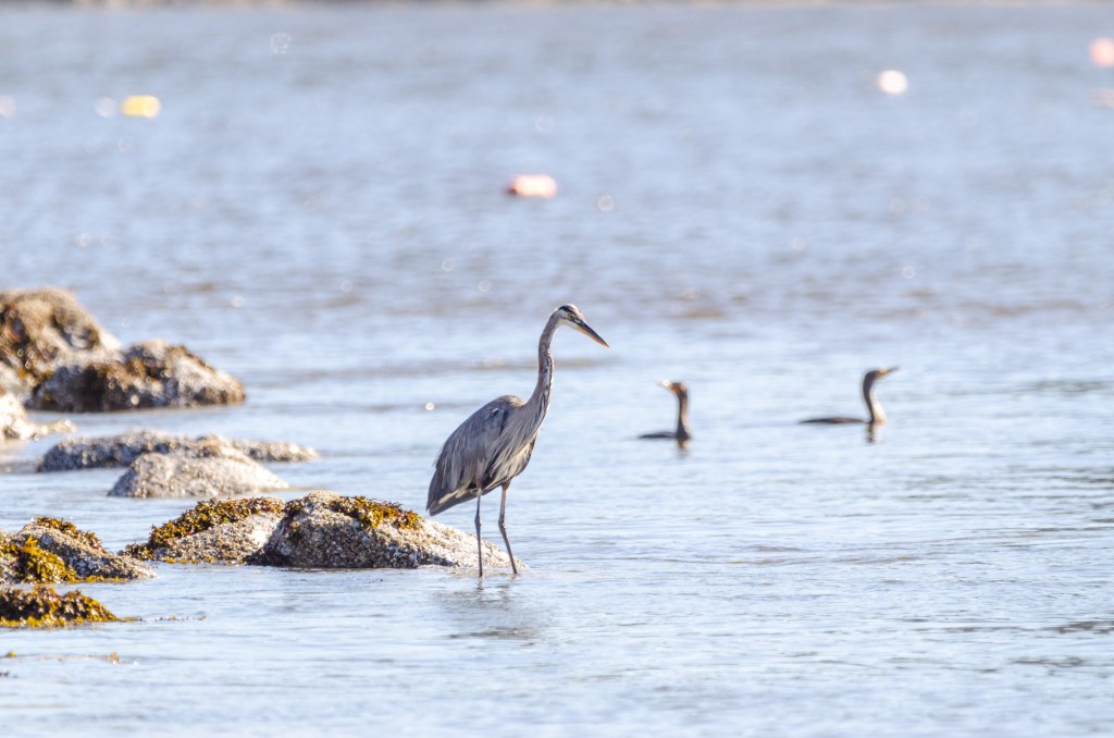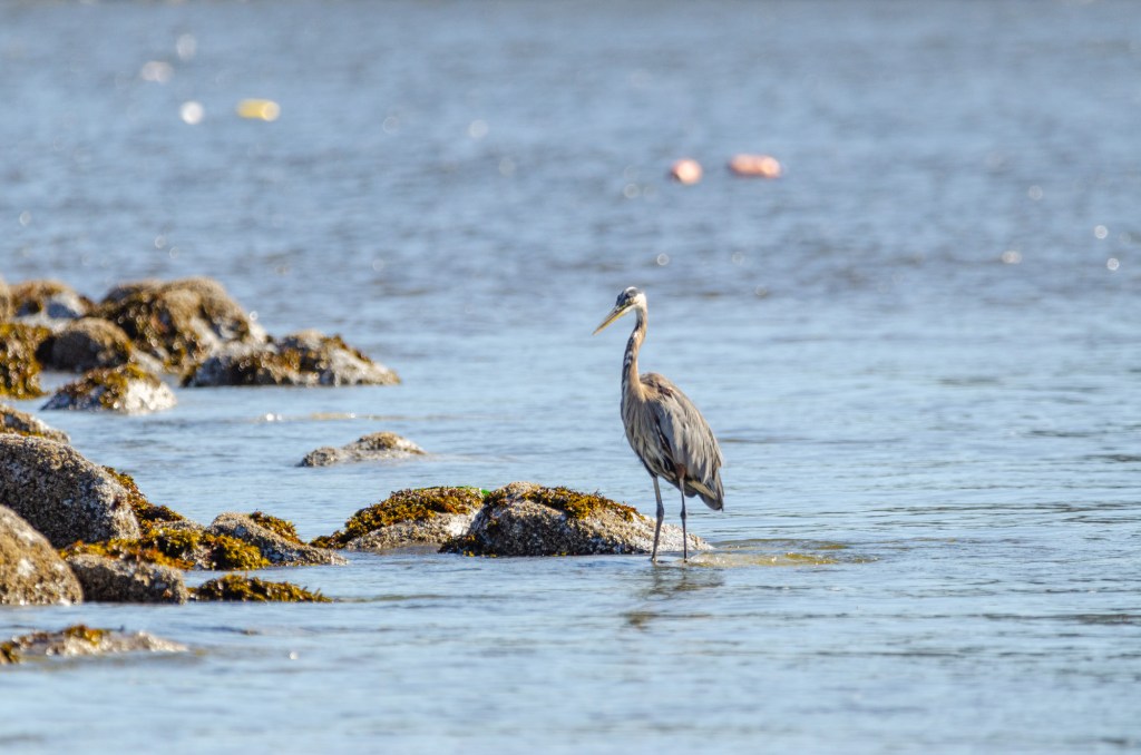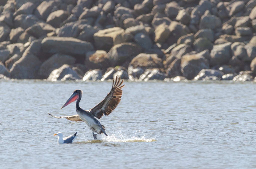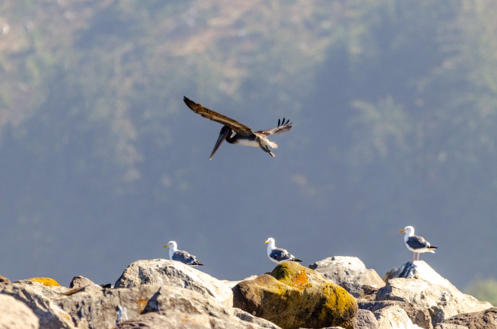 My friend let me borrow a few of his lenses. One he let me borrow was a 600 mm. This thing was huge and heavy. It was so heavy he let me bring his monopod to help steady it. I was lucky that when I got to the beach there was a pelican and a blue heron. I love to take pictures of birds. I used the lens my friend let me borrow and if I knew how to steady that thing I could of got some great photos of the pelican. I got some photos but I don’t think a single one is completely in focus. It was so hard to track the bird with that huge heavy lens. But I’m adding the photos anyway cuz it’s still cool to see.