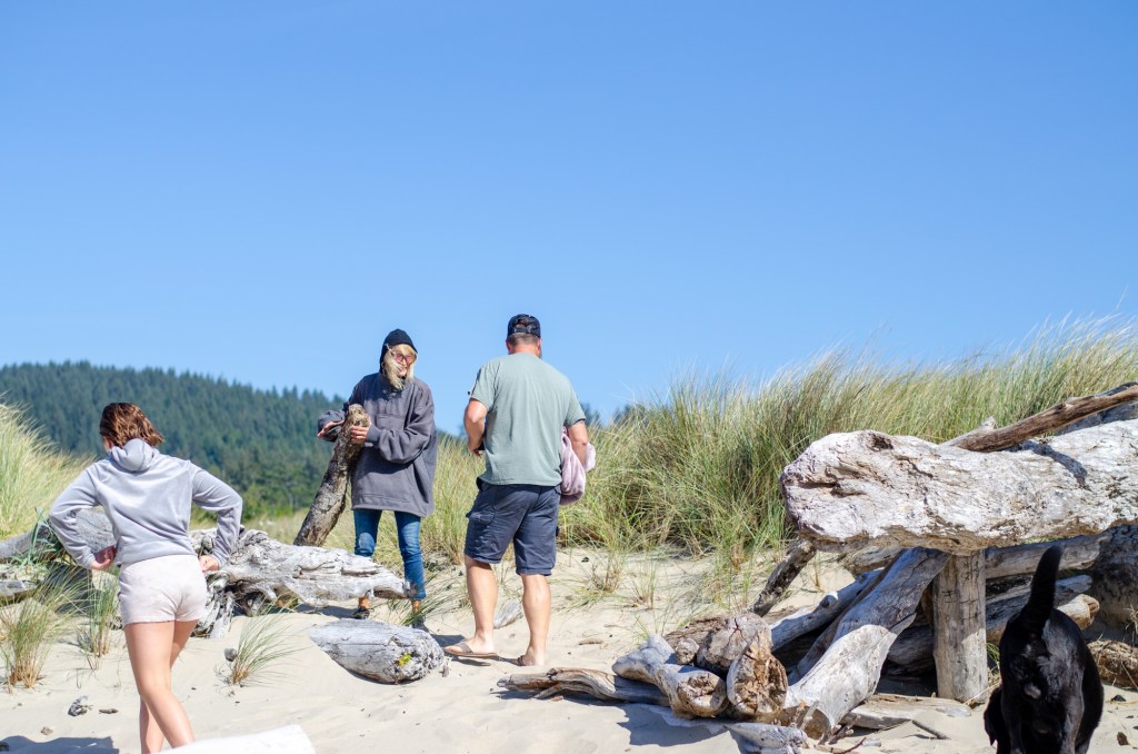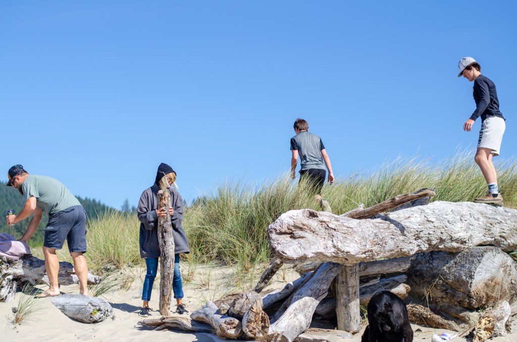 And then finally we made our way down to the beach with cousins! Tyler had gone done before hand and said it was pretty nice at the beach. He was wrong. It was windy and cold but we stayed and played for a bit. Everyone found logs to try and make a nice area to sit away from the wind. It was so windy it was blowing the sand so hard it was painful when it hit you.