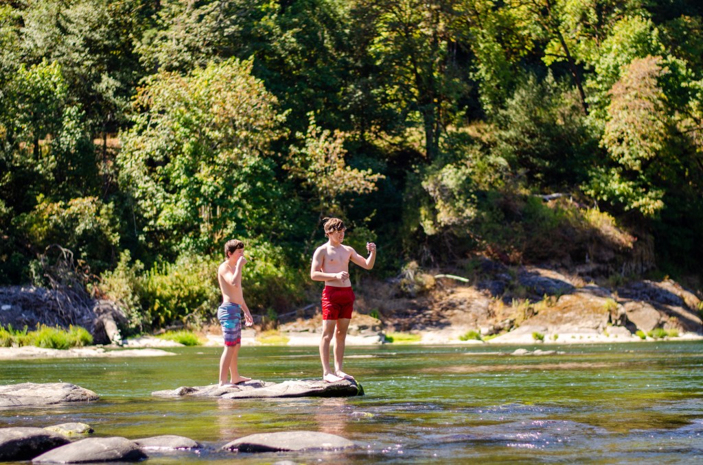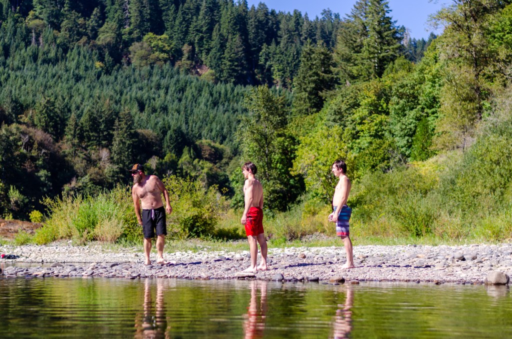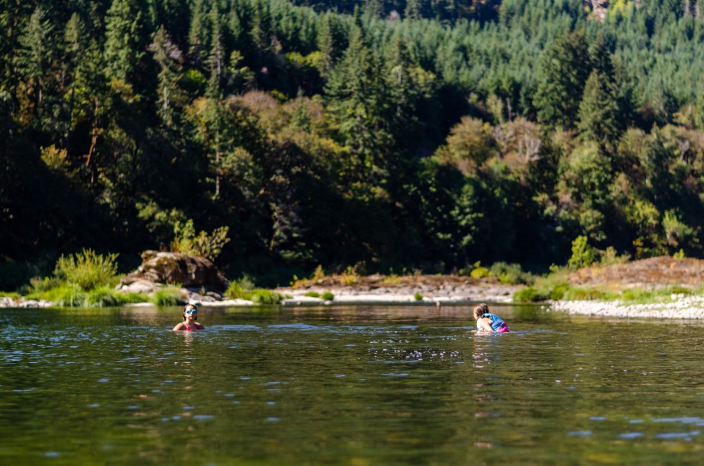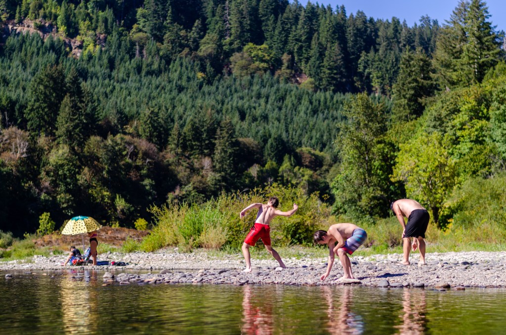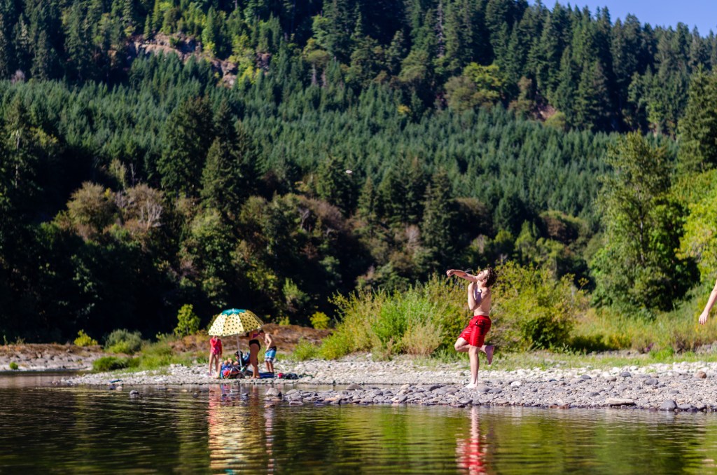 Day 4 we went down to the Umpqua River to play. We went to a place the family calls Family Camp. It was a beautiful day and the water was surprisingly warm. We all had a lot of fun, especially the kids. They wanted to go back there again.