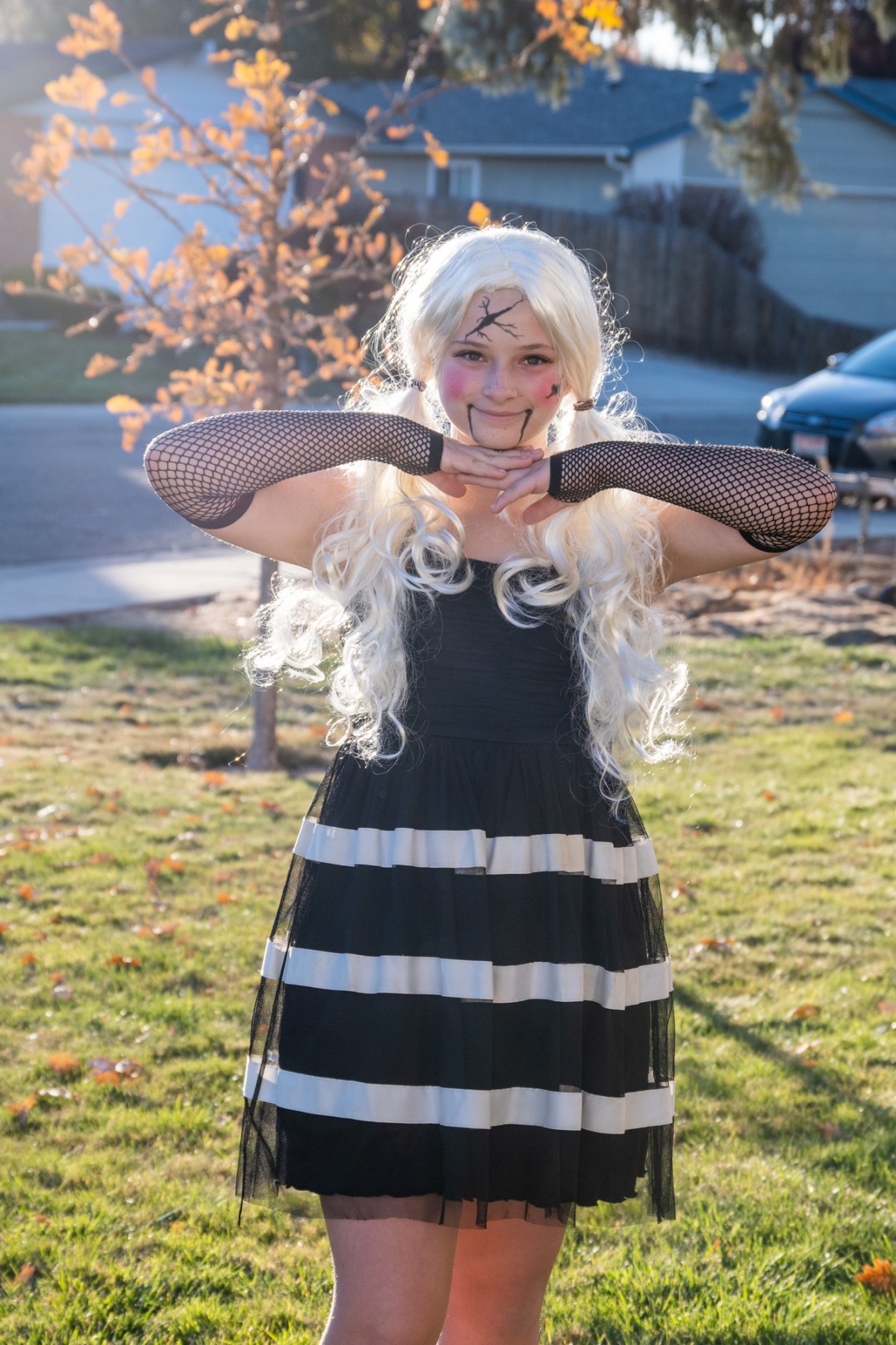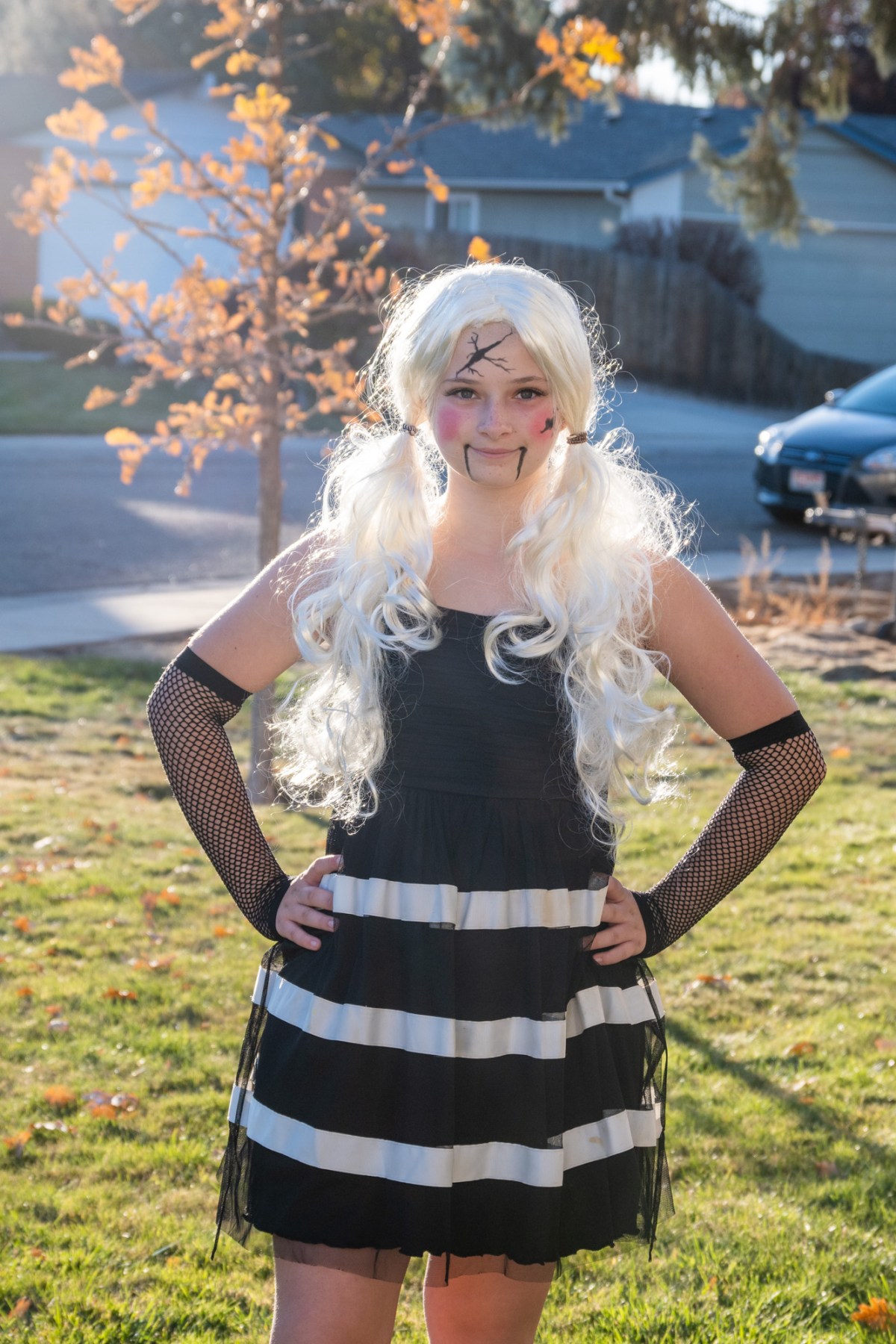 Jayse didn’t dress up this year so I only have a few photos of Jaelee dressed up. She was a broken creepy porcelain doll. She came up with the idea and her whole costume on her own. Love how creative she is.