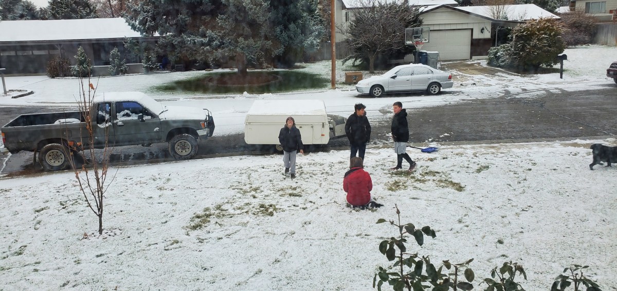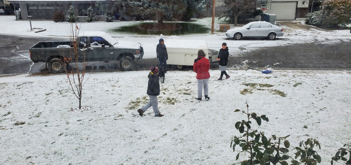 While my family was here we got some snow, which is nice since they’ve been living in AZ they don’t see it a lot. I knew it wouldn’t last long and I was right, it was gone within a few hours. I made sure the kids got out there right away and they had a snowball fight with some of the neighbor kids.